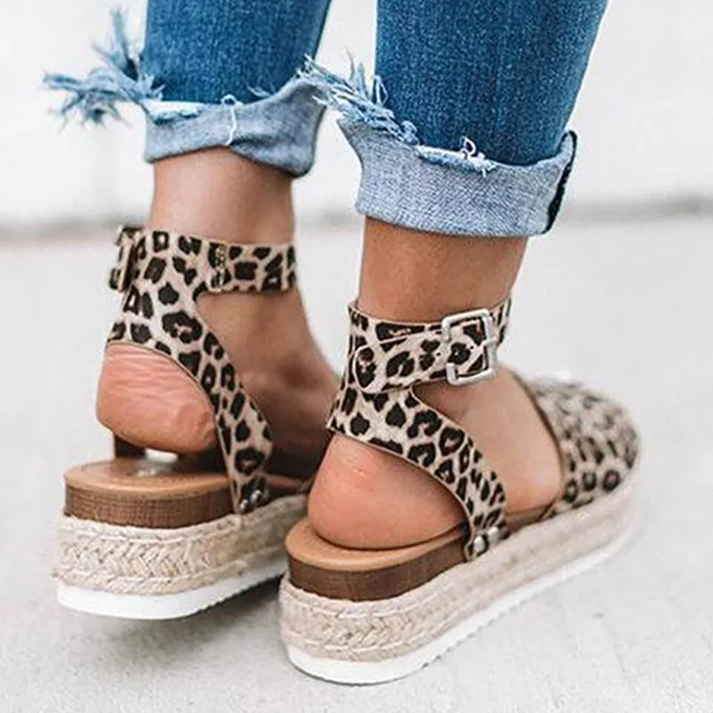 Женские летние модные сандалии с пряжкой и ремнем, на танкетке с леопардовым принтом в ретро-стиле; Босоножки с открытым носком