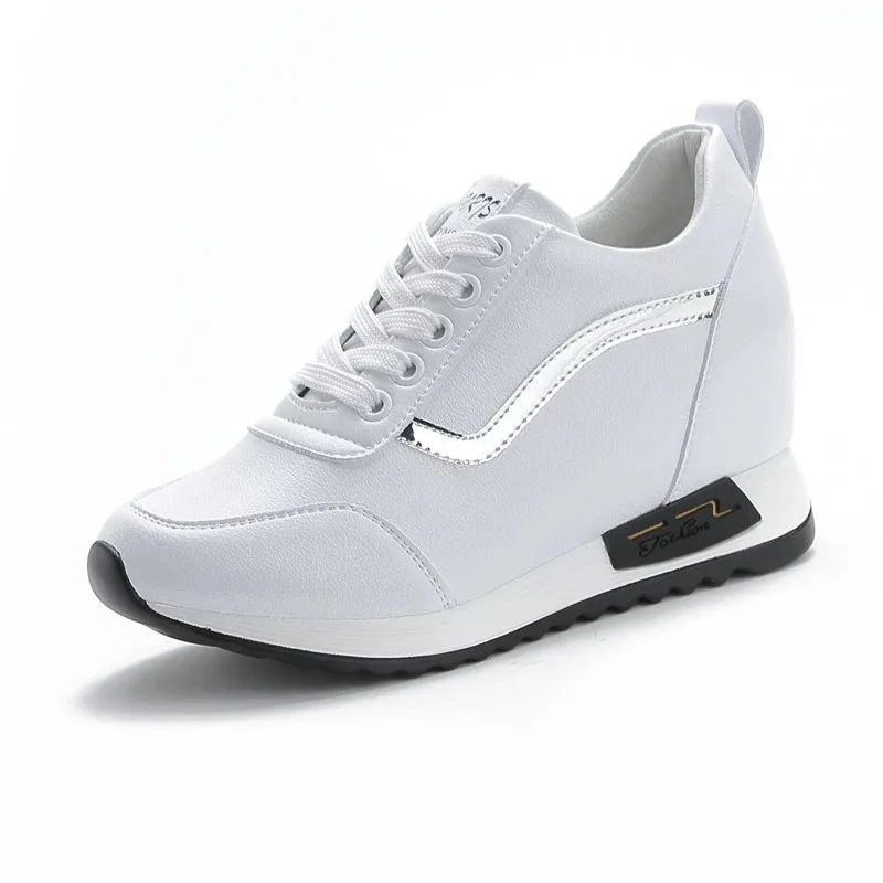 Женская обувь белого цвета; Женская обувь из искусственного материала (ПУ); Женские туфли на высоком каблуке Женская обувь кроссовки 2019 модные туфли на танкетке; Женские Сникеры; Сезон весна-осень; Высокая платформа; Женская повседневная обувь Z339