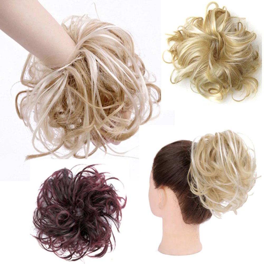Женские Толстые грязные кудрявые волосы пучок для наращивания Scunchie Updo Cover Chignon Hairpiece