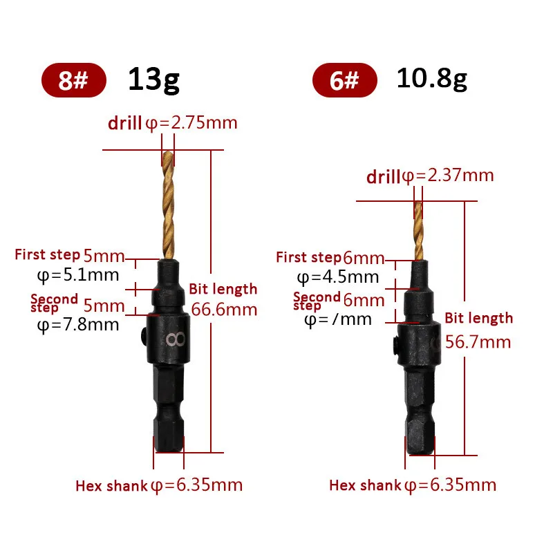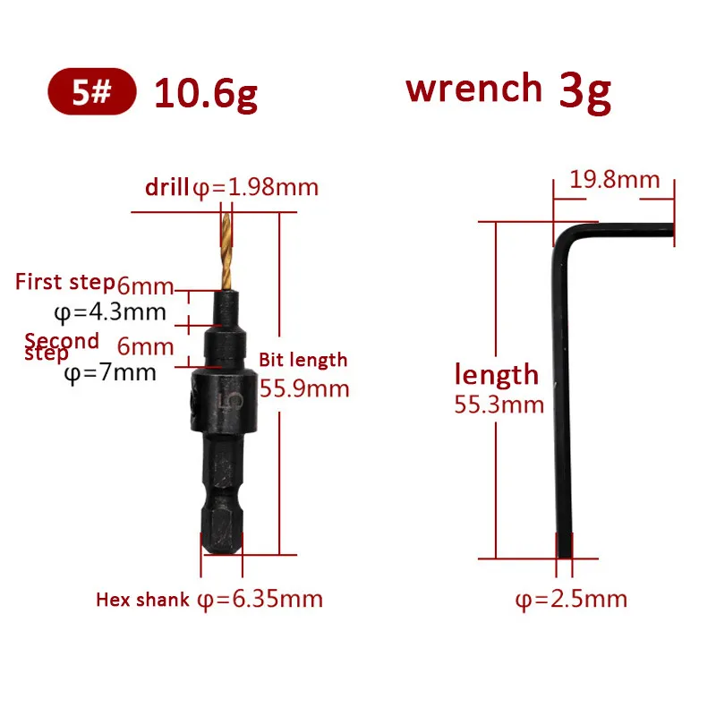 5*countersink Drill Bit (includes 5#, 6#, 8#, 10#, 12#)