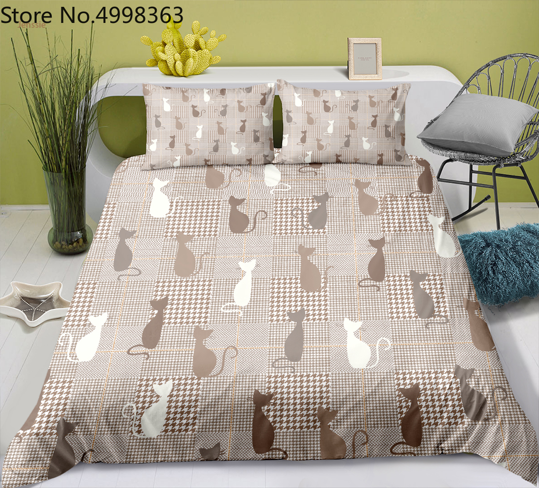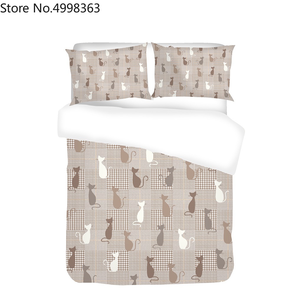 Комплект постельного белья с милым котом, 2/3 шт., покрывало на кровать с изображением животных для детей, для мальчиков, пододеяльник, одинарный, двойной, Королевский размер, комплекты постельного белья, наволочка