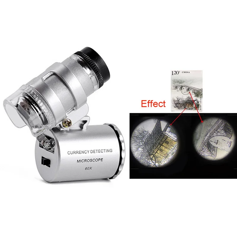 Мини 60x микроскоп увеличительное со светодиодной УФ-подсветкой карманное Ювелирное Украшение Лупа Ювелир Лупа Zoom инструмент