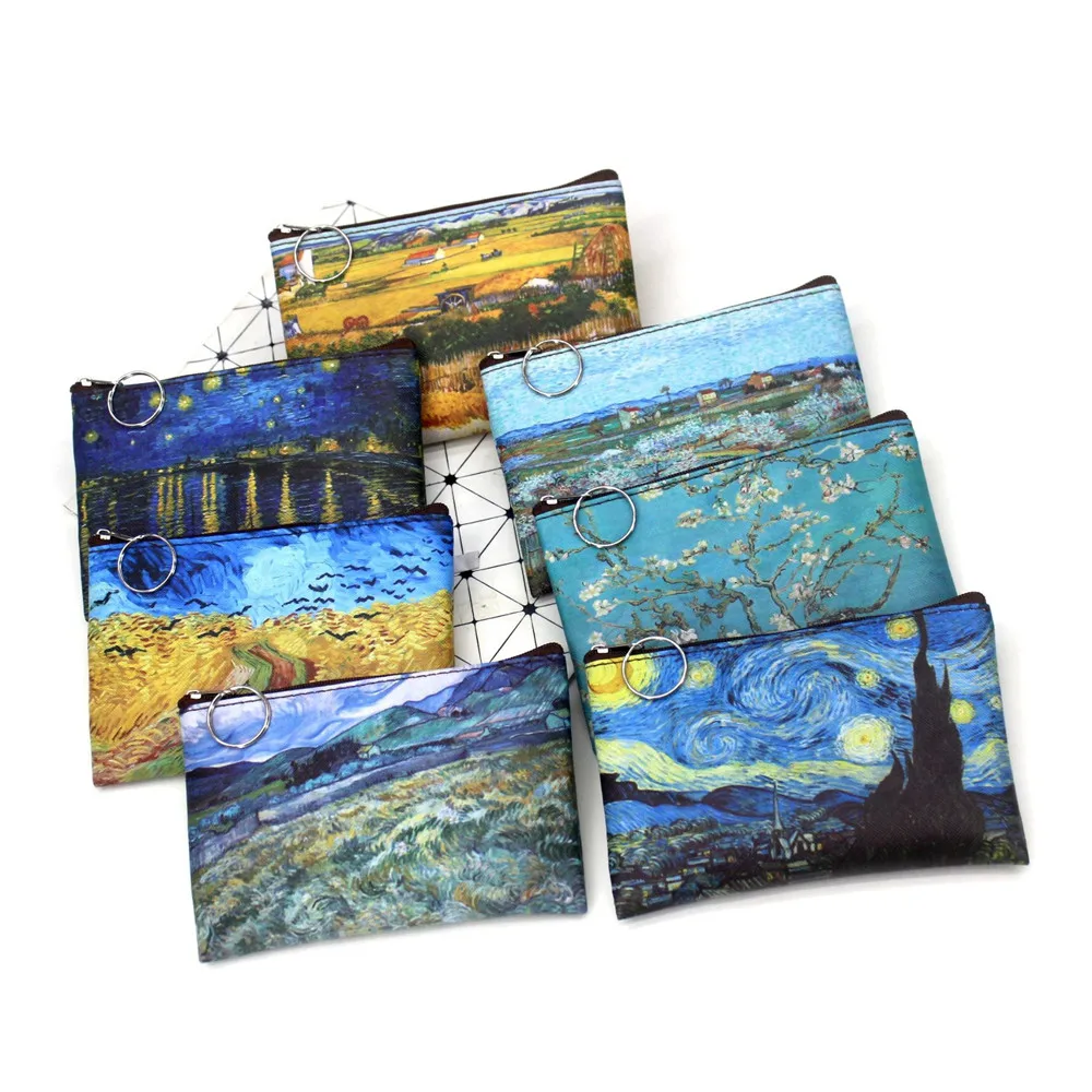 Classic Print Women Coin Purse Famous Painting Change Purse Lady Holding Square Small Wallet Vintage Student Mini Bag