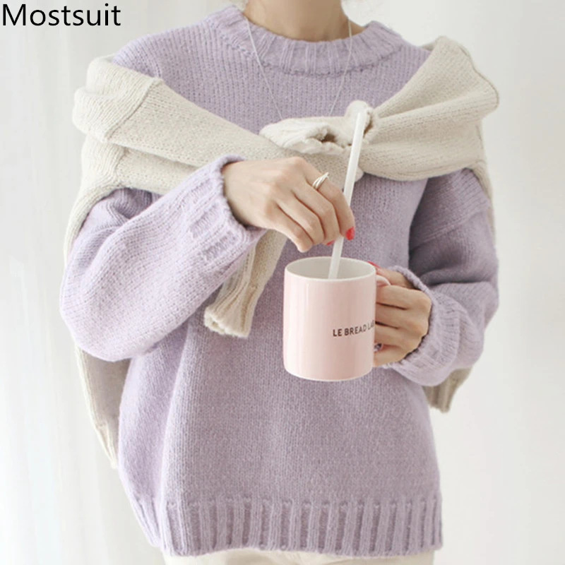 Трикотажный однотонный пуловер осень-зима 2019US $28,64