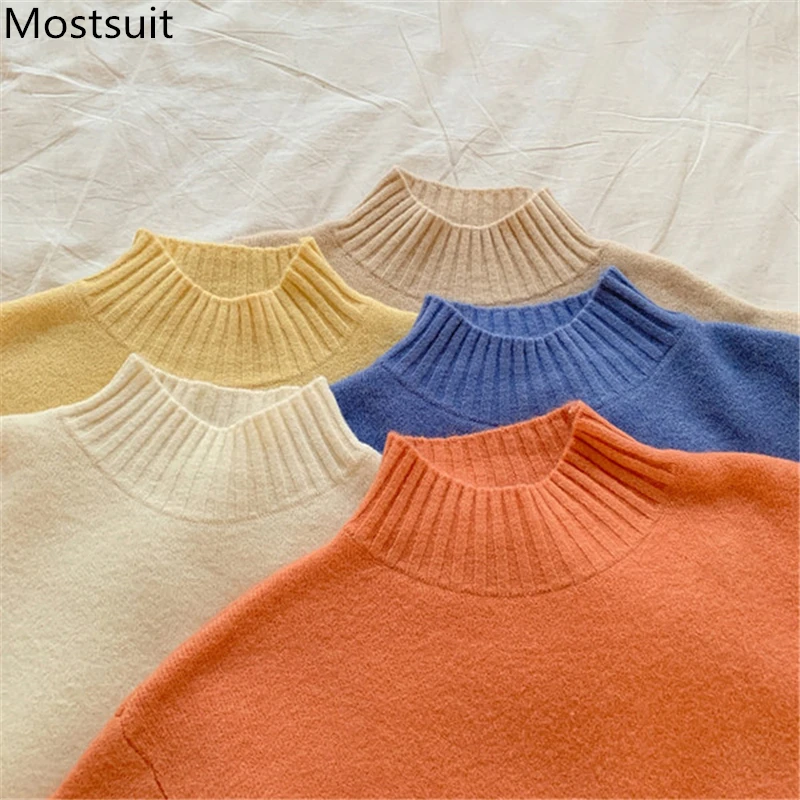 Корейский вязаный пуловер с высоким воротом SweUS $28,27