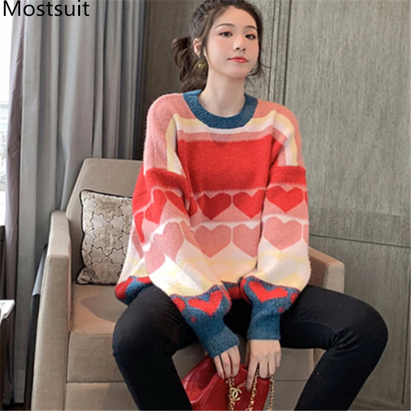 Женский вязаный пуловер с сердечкамиUS $27,91