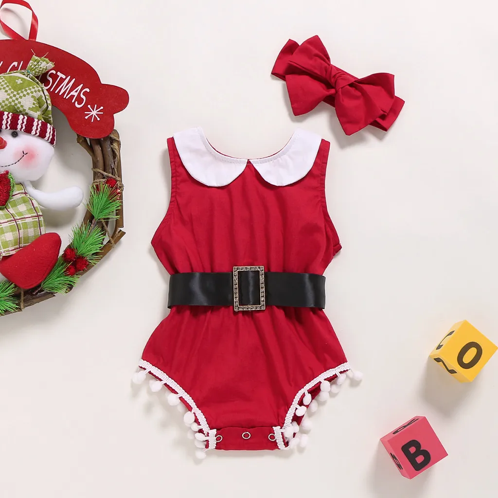 Рождественский однотонный комбинезон с кисточками для маленьких девочек, боди + пояс + повязка на голову, комплекты одежды