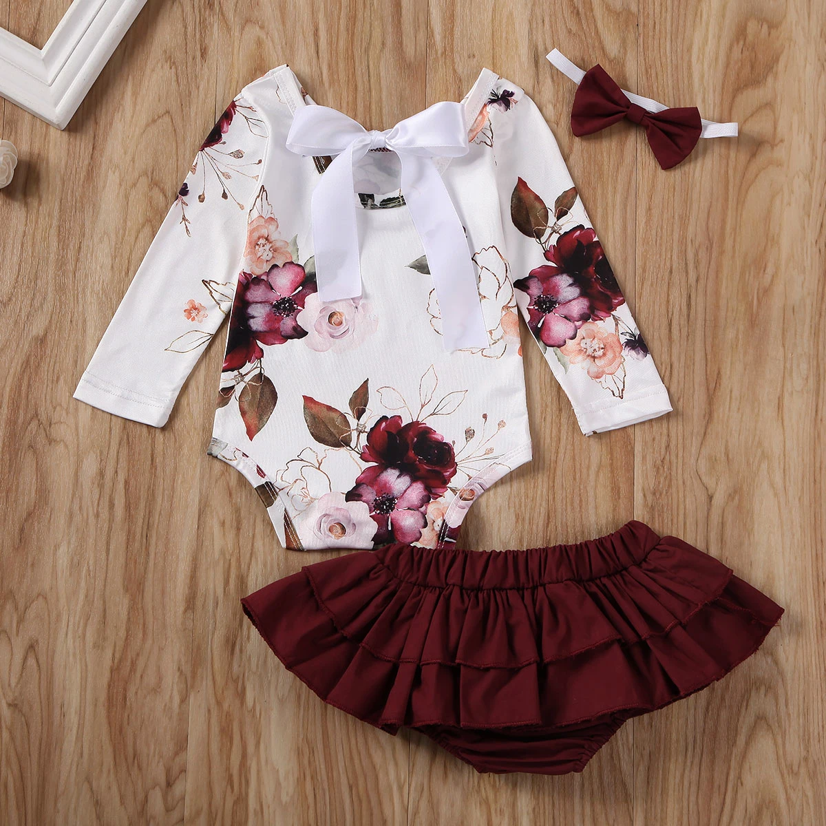 Комплект одежды для новорожденных девочек из 3 предметов: боди с цветочным