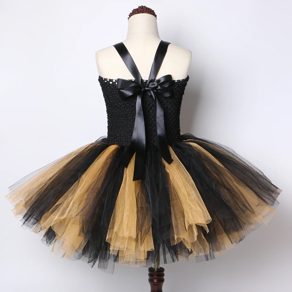 Платье-пачка черного и золотого цвета; Детские платья принцессы для девочек на день рождения, карнавал, Хэллоуин, маскарадный костюм; рождественское платье для девочек