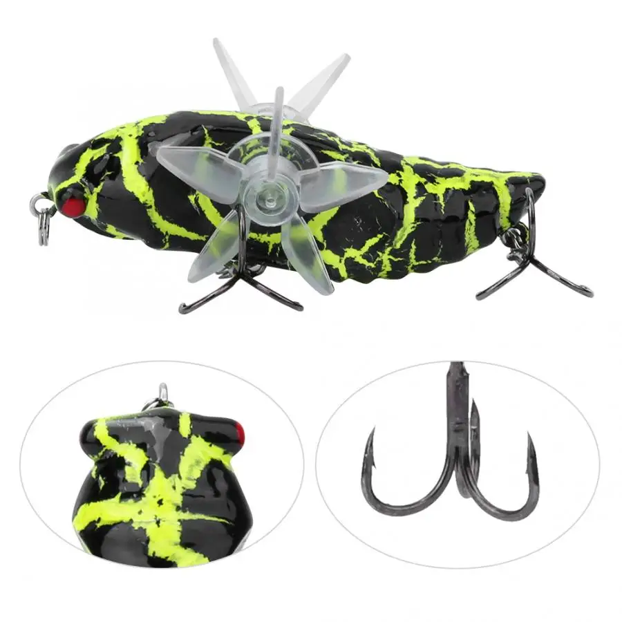 Жесткая приманка для рыбы плавающий бионические приманки для рыбной ловли в форме цикады для доставки прикорма и оснастки воблеры воблера с вращающимся Спиннер вращается пропеллер тройной крючок 7,5 см
