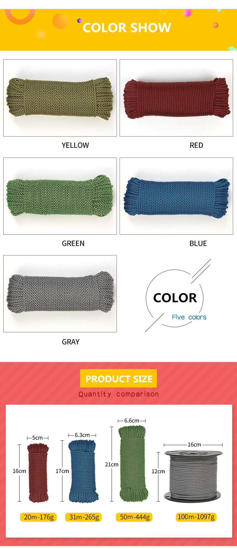 Диаметр: 4 мм Материал: Высокопрочный полиэстер Грузоподъемность: 146 кг Цвет: желтый, красный, зеленый, синий, серый, черный