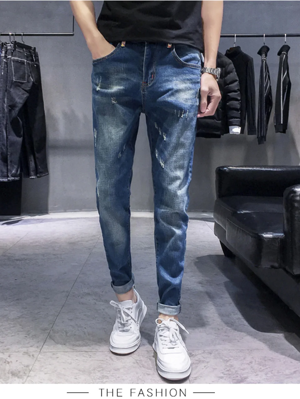Джинсы мужские с широкими штанинами свободные прямые брюки из денима брюки-багги