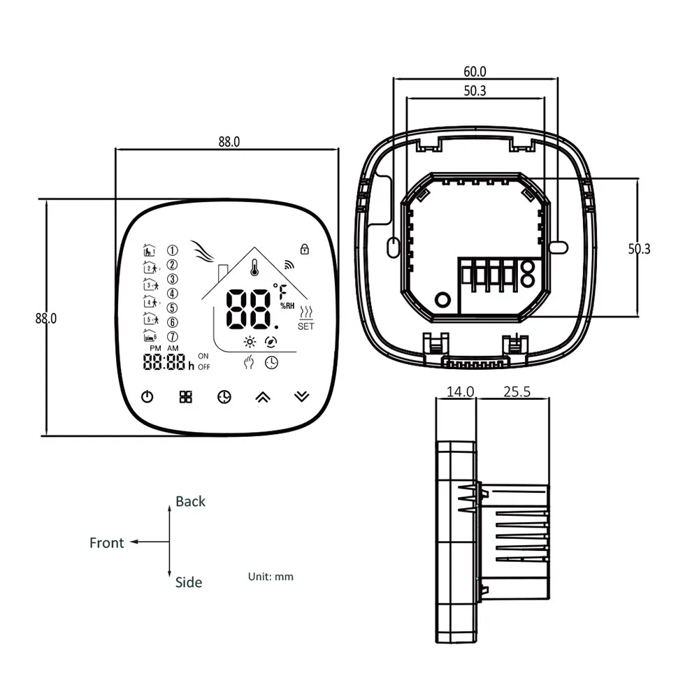 Этот мини-термостат может регулировать температуру в помещении, обнаруживая температуру. Это безопасно, надежно и Энергосберегающе, обеспечивая Вам комфортную среду одновременно. Он используется для промышленности, коммерции, больницы, гостиницы, гражданских зданий и вилл для контроля отопления.