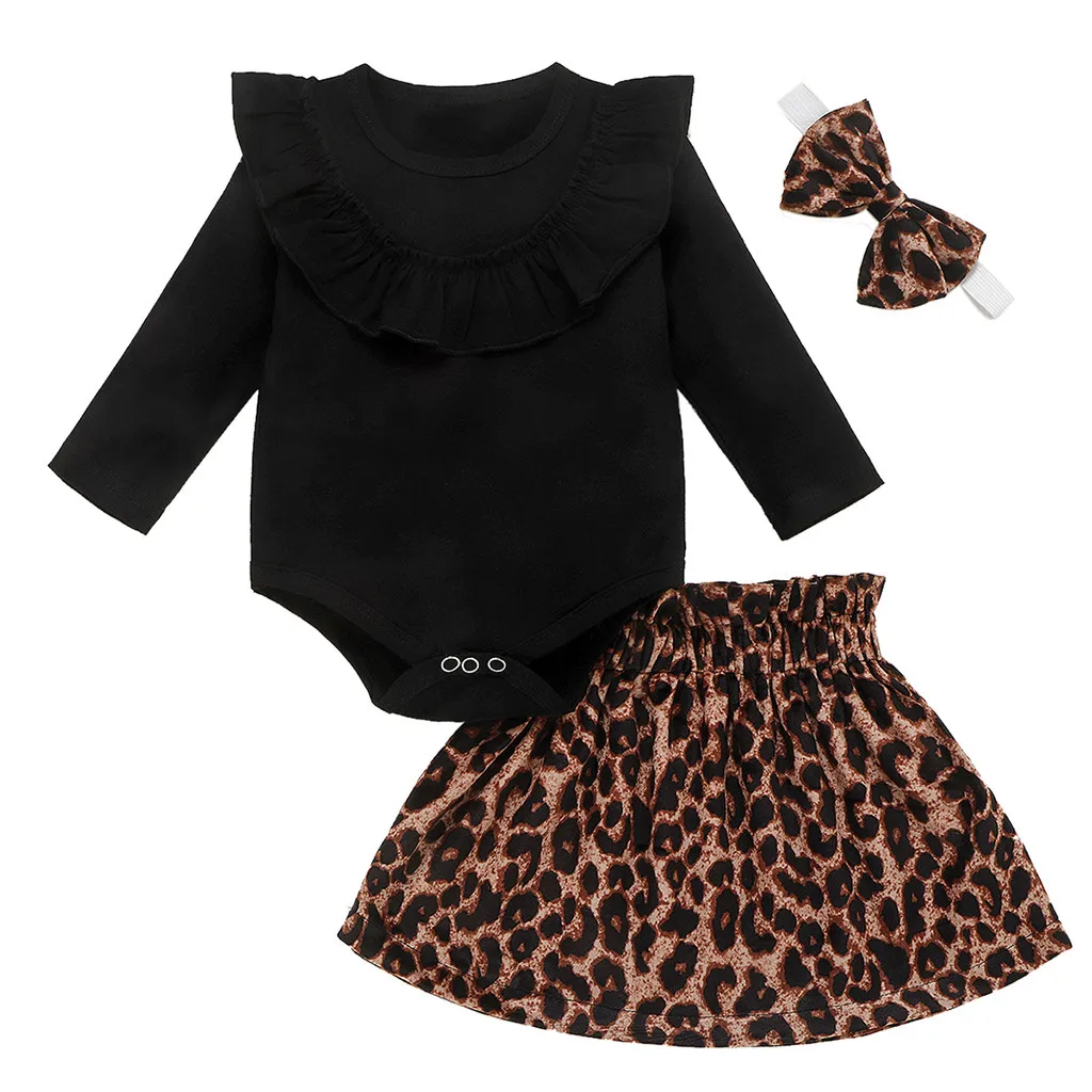 Комбинезон с оборками для маленьких девочек; боди с леопардовым принтом; комплекты с юбкой