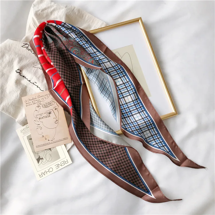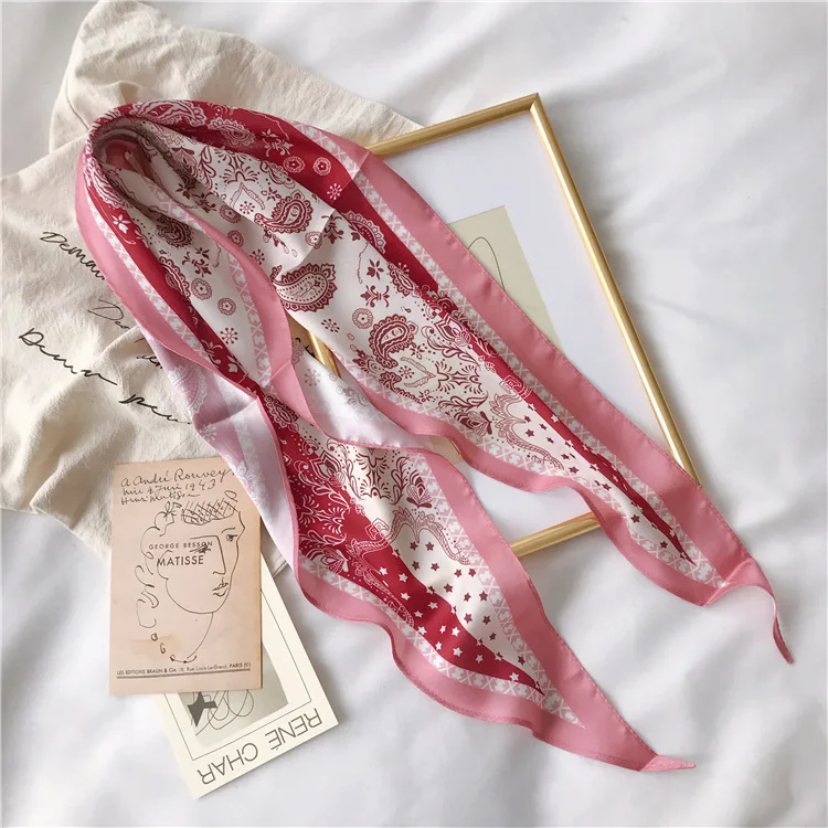 Luna & Dolphin весенний женский шарф с бриллиантами 110x35 см, темно-красные шифоновые шелковые шарфы в полоску, свежий стиль, женские маленькие повязки на голову, бандана