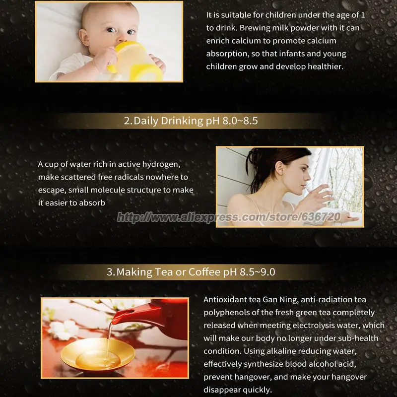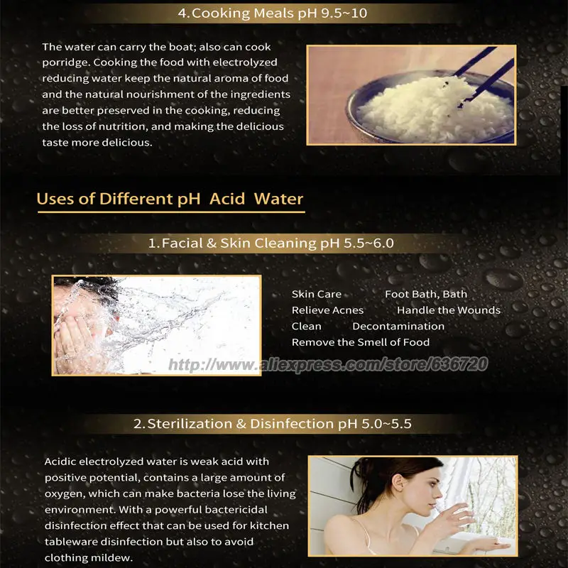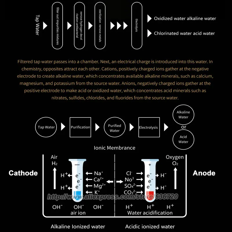 1. Подключите устройство к вашему смесителю правильно следуйте инструкциям и инструкциям. 2. Питание ионизатора воды 3. Установите тип воды на сенсорной панели 4. Хорошо, получите воду, которую вы хотите!
