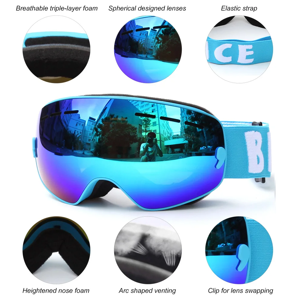 Benice Uv400 противотуманные лыжные очки двухслойные взрослые лыжные очки линзы для сноуборда очки для мужчин женщин мужчин сноуборд очки