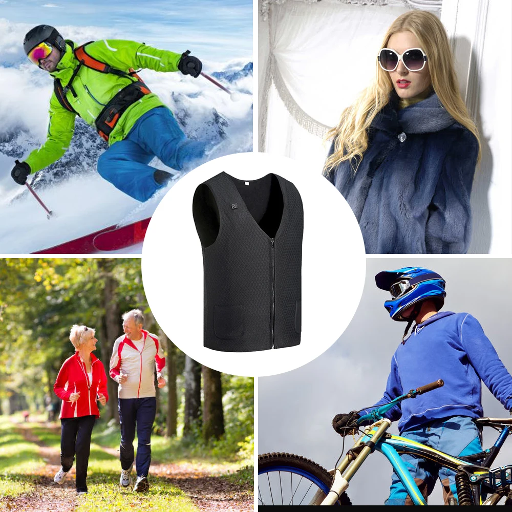 Жилет с подогревом оснащен 5 нагревателями из углеродного волокна (вокруг талии и спины). Материал подкладки одежды мягкий и удобный. Одежда с электрическим подогревом способствует циркуляции крови, облегчает боль в мышцах.