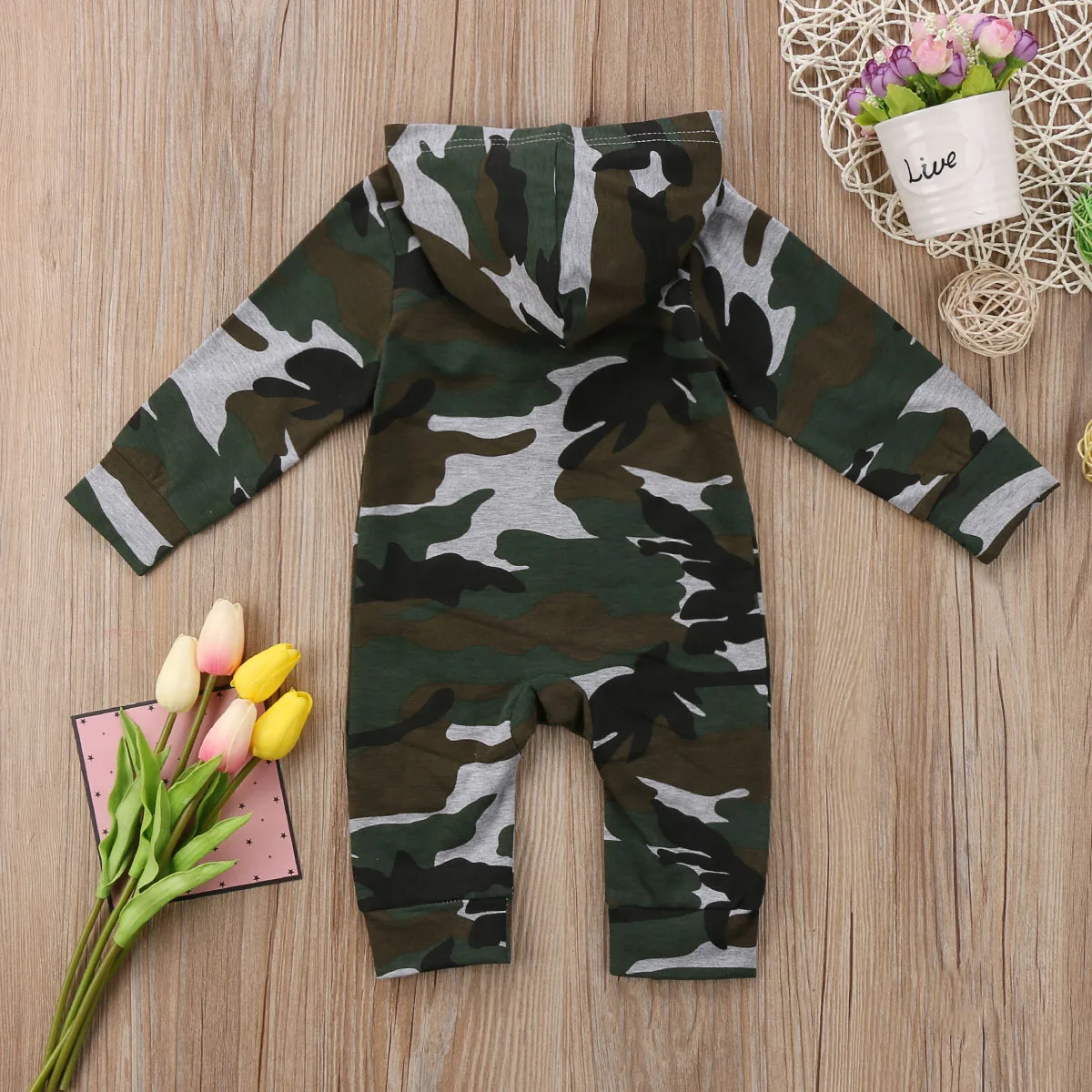 Модный камуфляжный комбинезон для новорожденных мальчиков и девочек! Высокое качество и абсолютно новый 100% Основной цвет: как на картинке Новинка в моде Материал:ХлопокОбратите внимание: если ваш ребенок пухленький, мы рекомендуем выбрать больший размер, спасибо. Просим перепроверять размеры детей, рост и полноту по размерной таблице перед покупкой/подачей заявки. Спасибо. Посылка включает в себя:1 детский комбинезон