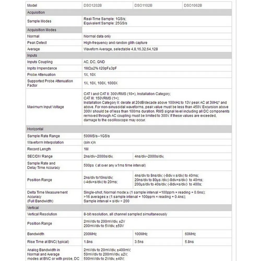 Осциллограф с высокой пропускной способностью 100 МГц, частота образцов 1GSa/s, глубина памяти 2 м.