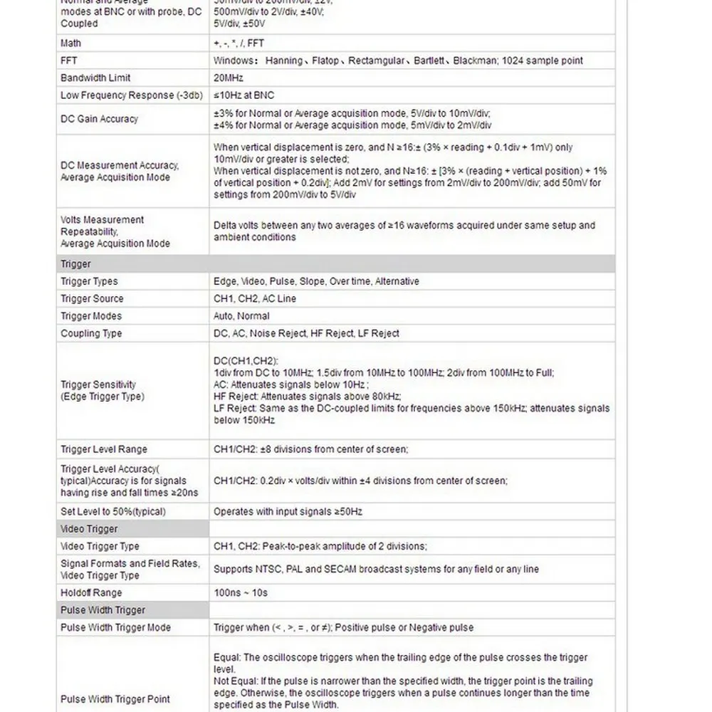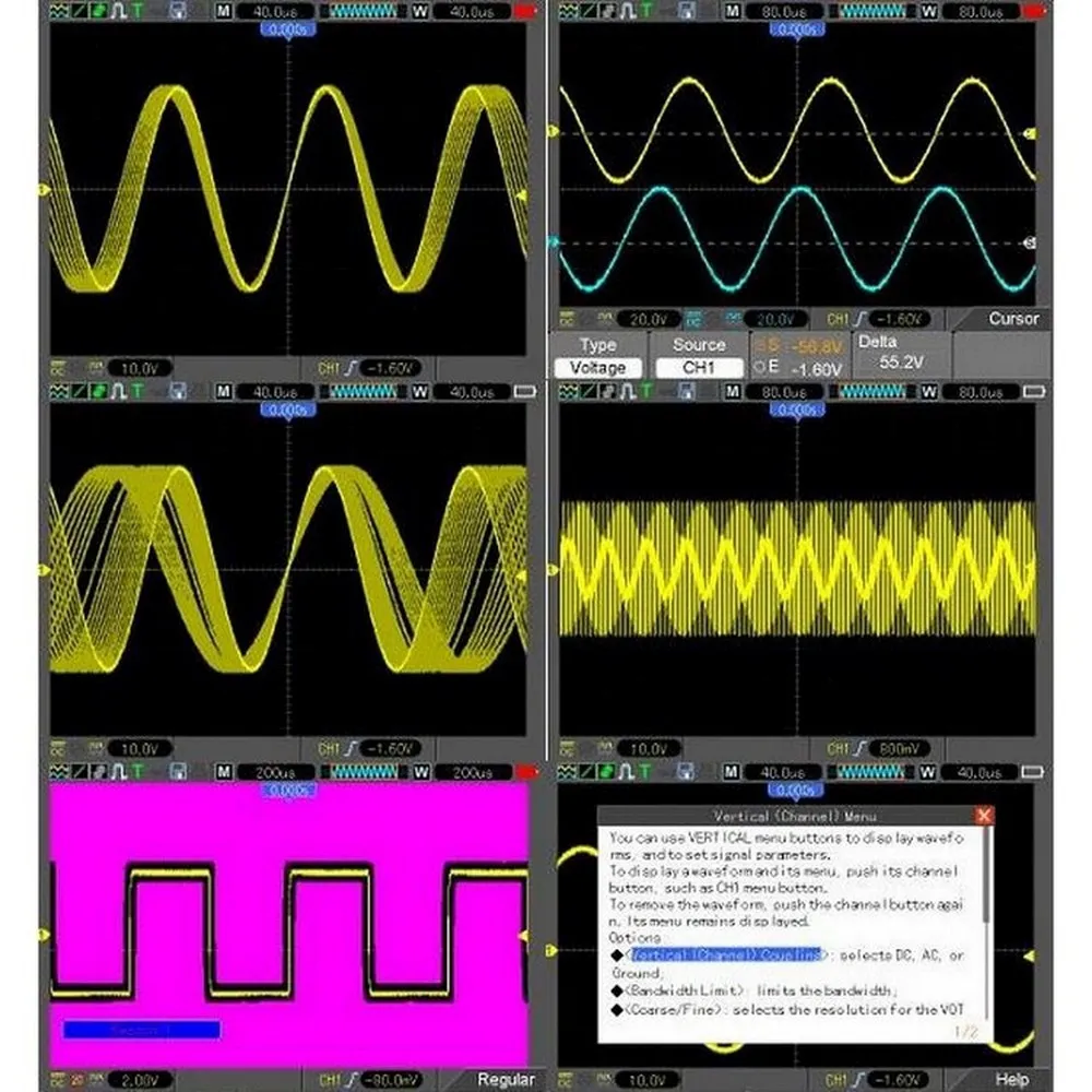 Спектральный анализ FFT; Математика формы волны: добавление, вычитание, размножение и разделение; Режим X-Y; Более 20 автоматических измерений; Функция проверки пропуска/сбоя, применяется для инженерного применения.