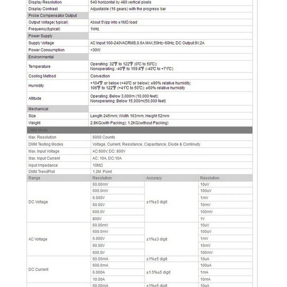 6000 отсчетов DMM, AC/DC напряжение, AC/DC ток, сопротивление, разрыв, емкость и Диодная функция.