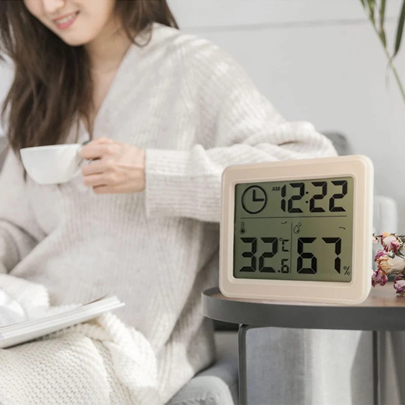 -Легкое чтение: большой экран дисплея с большими цифрами показывает вам точную температуру и влажность окружающей среды в реальном времени.