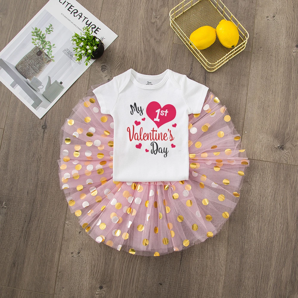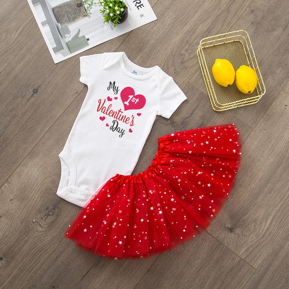 Первый день Святого Валентина, комплект одежды с юбкой-пачкой для маленьких девочек милый комбинезон для малышей на 1 день Святого Валентина + Милая фатиновая юбка-пачка семейная праздничная одежда