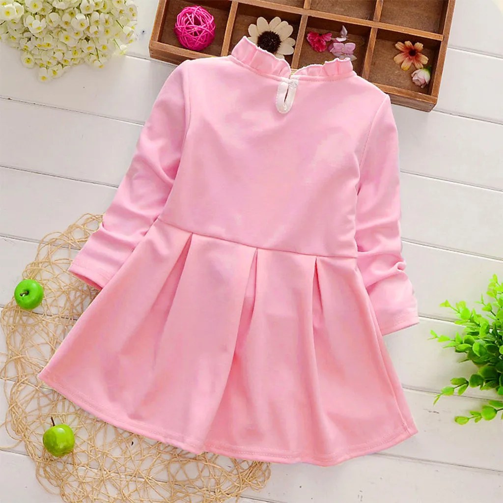 Однотонное платье с длинными рукавами для девочек; юбка принцессы для маленьких и средних детей