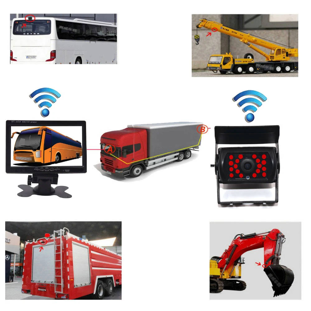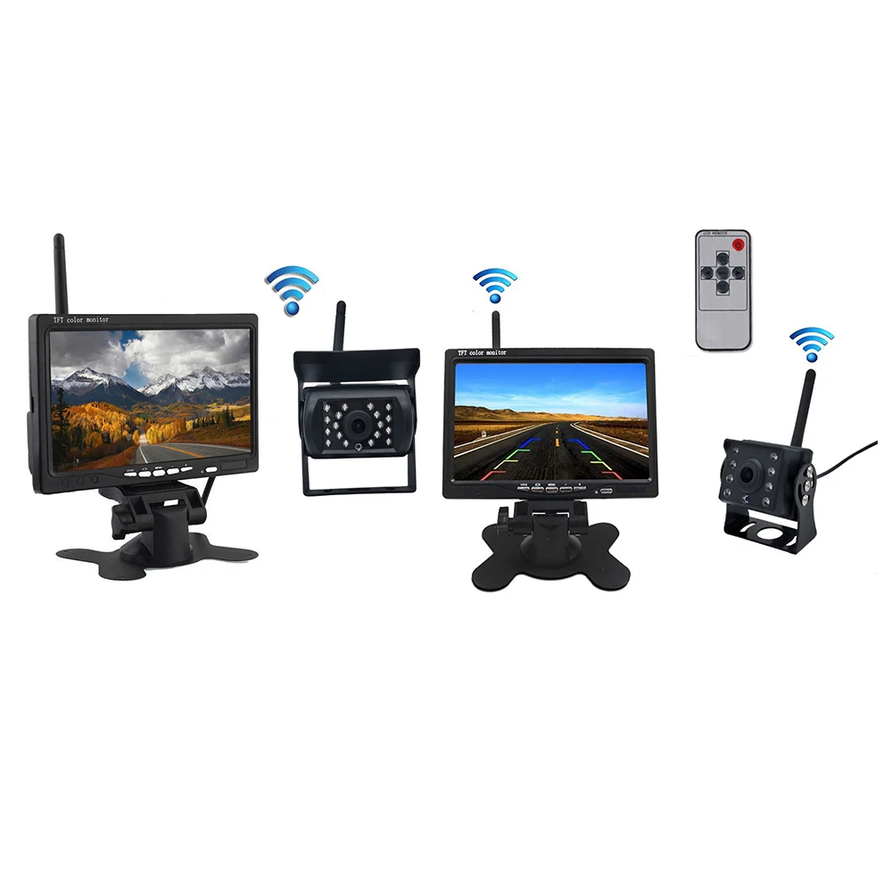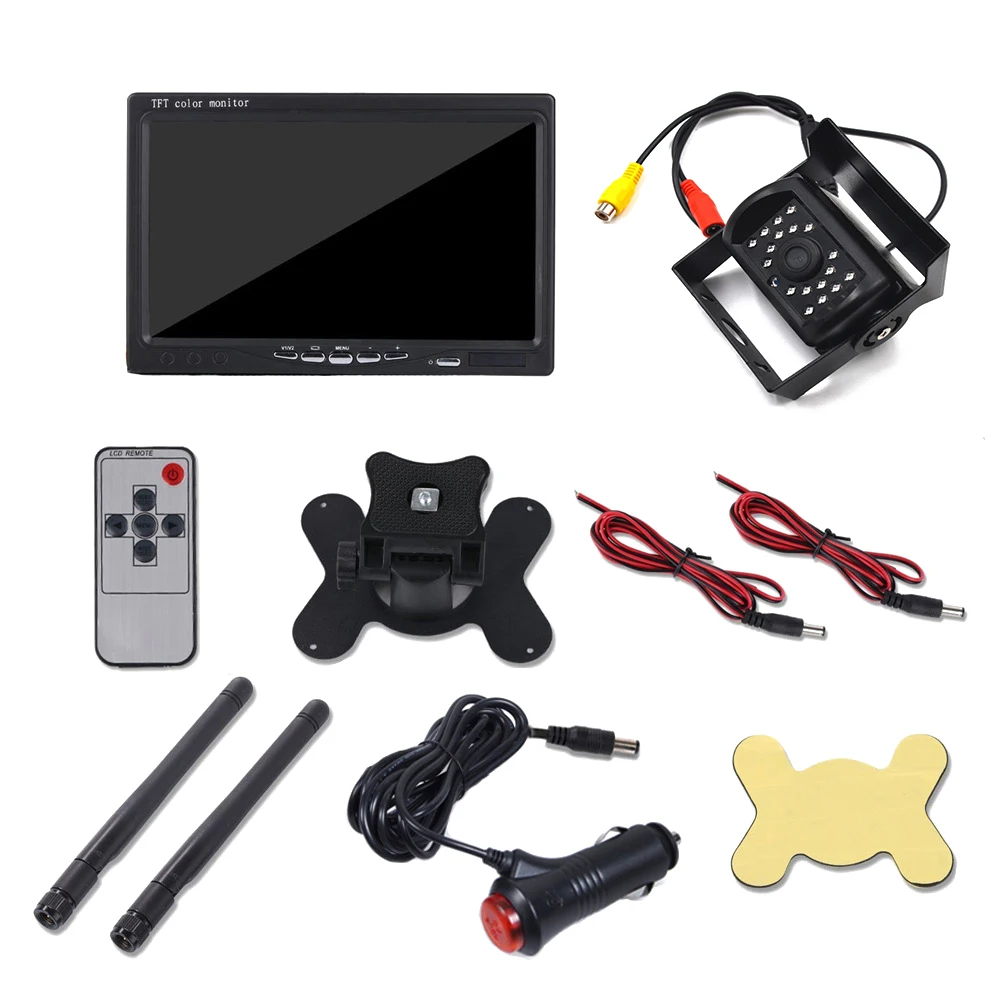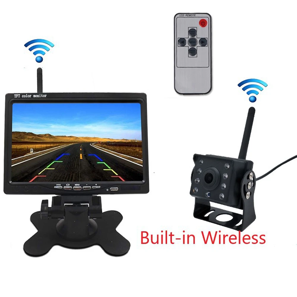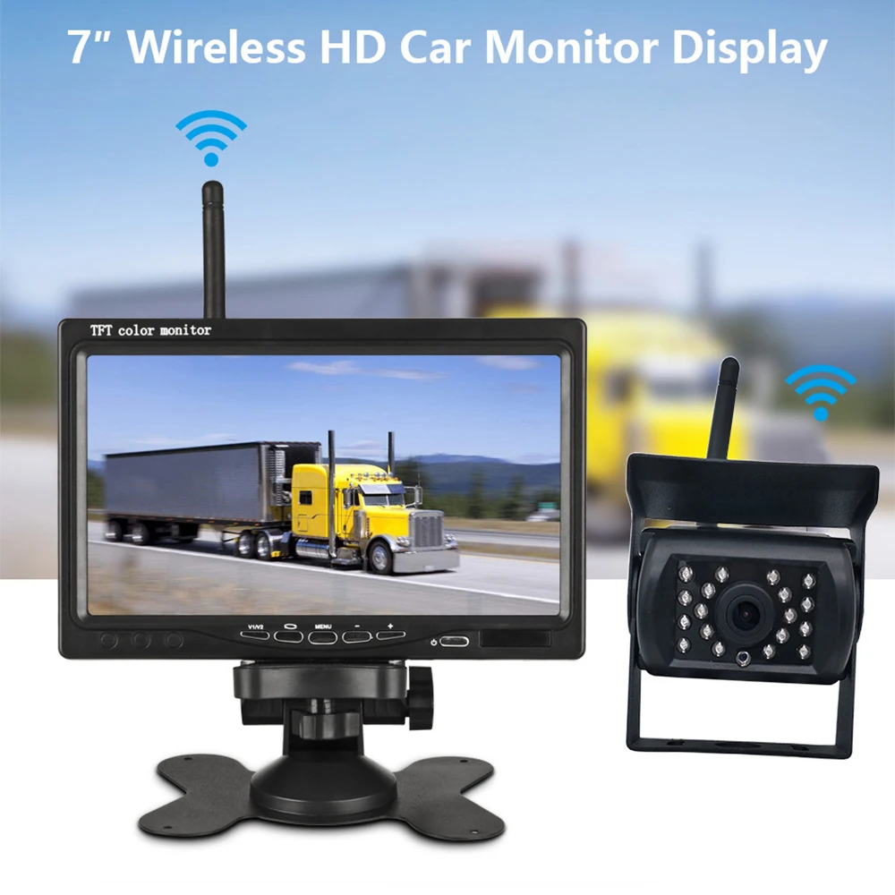 7" Wireless LCD Monitor Car Rear View Kit LED CCD Parking Reversing Backup Camera for Bus Truck Motorhome 12V-24V