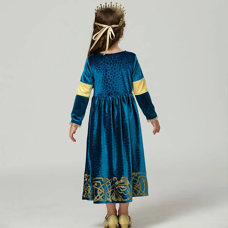 Название: смелое платье принцессы Мериды; Костюм для девочек на Рождество, День рождения; Детские зеленые вечерние платья с длинными рукавами; Платье принцессы Мериды с париком