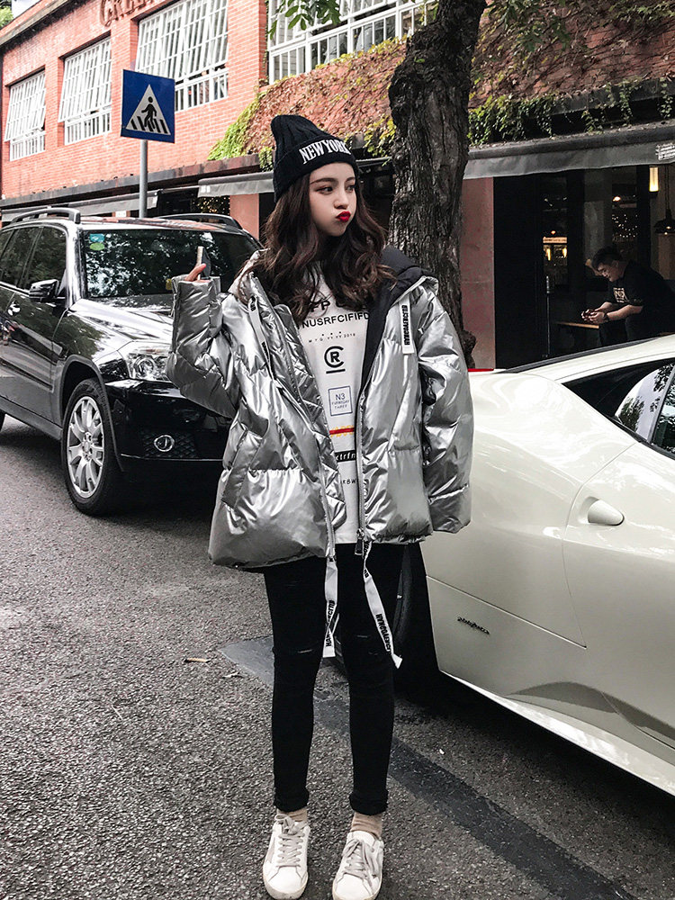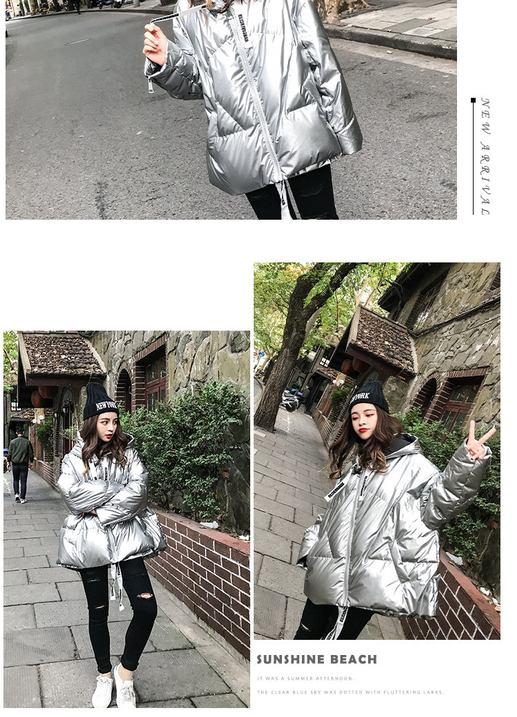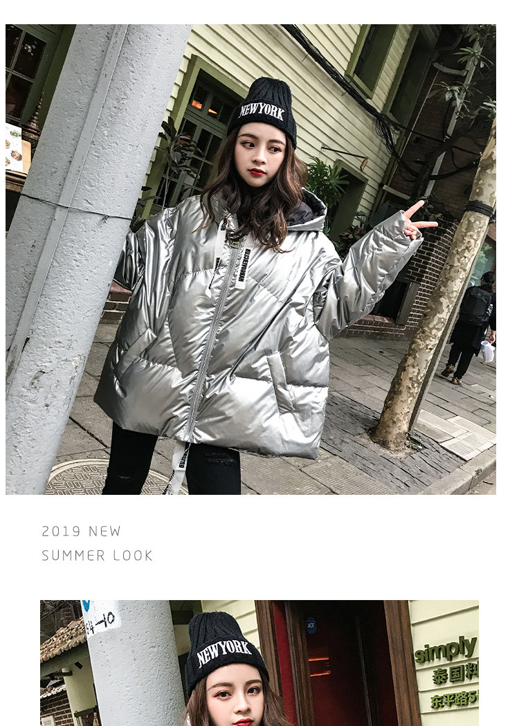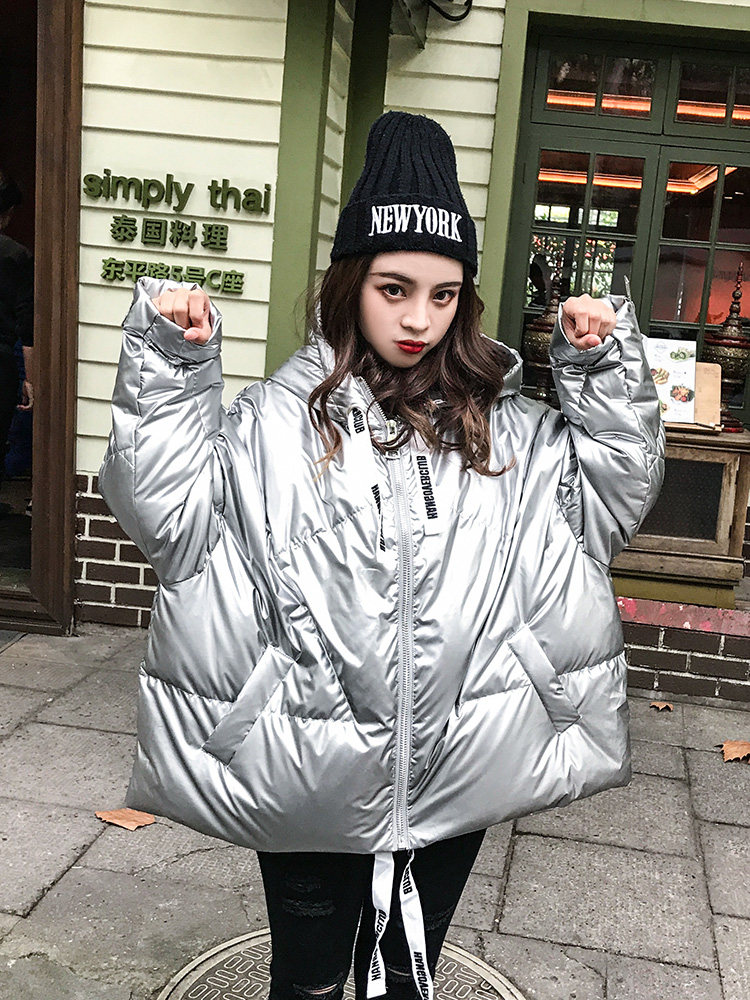 2020 зимний Блестящий Яркий пуховик, Женское пальто с капюшоном, куртка на молнии, свободная зимняя теплая Толстая парка, Женская куртка DG319