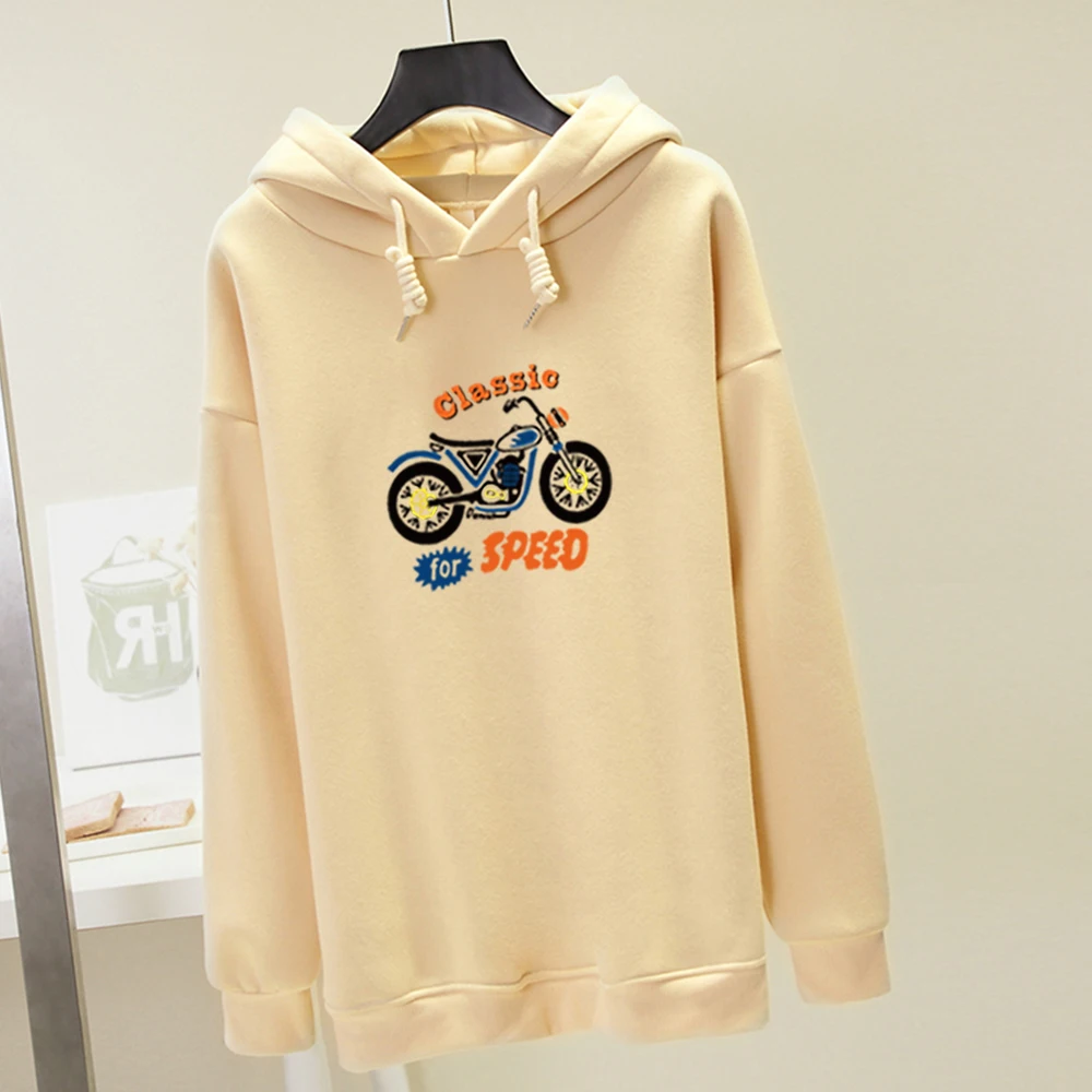 Классические для Скорость письмо с принтом "мотоцикл" теплые Kpop Толстовка уличная Harajuku пуловер Толстовка женская Kawaii