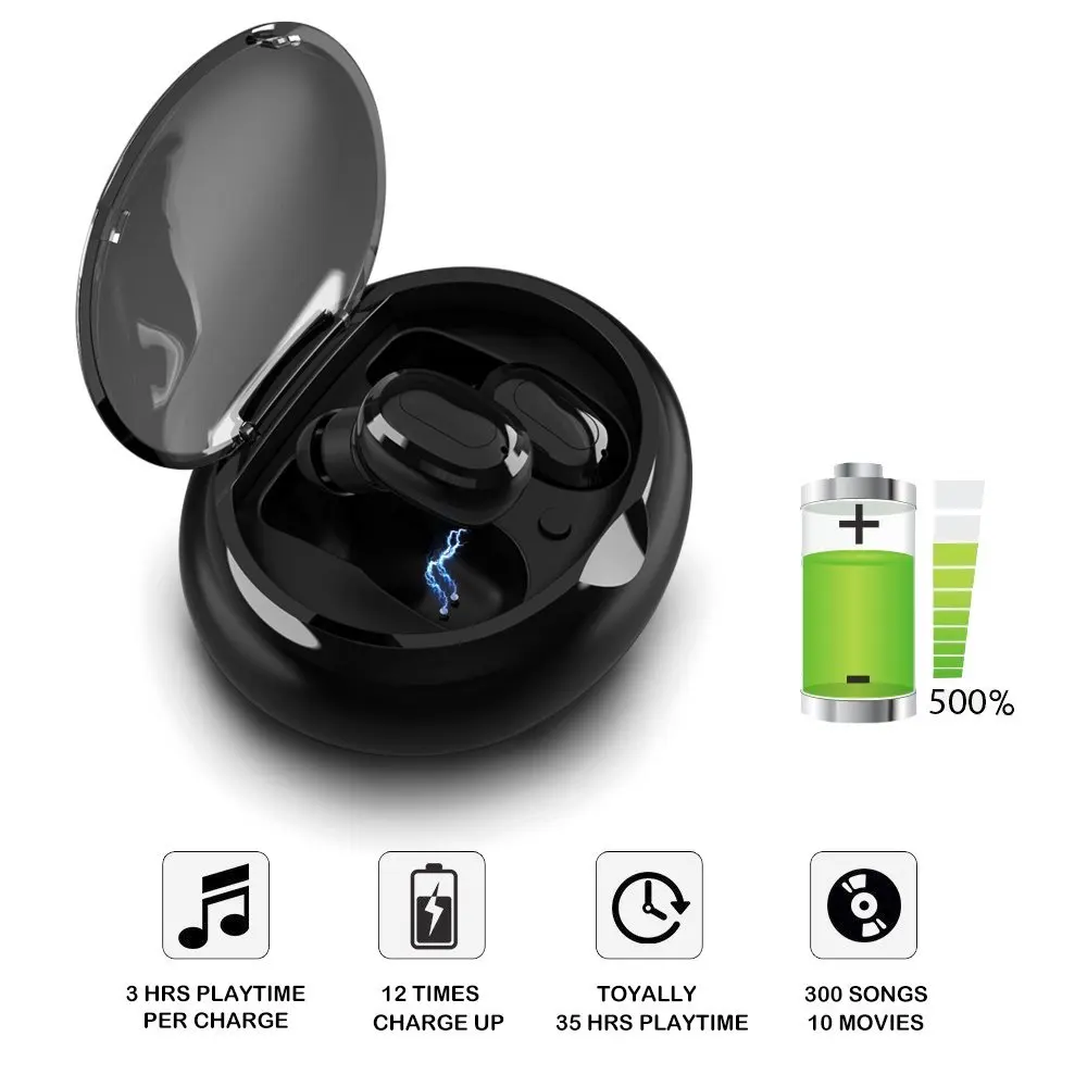 Изготовлен из превосходного материала, обеспечивает чистый, HD голос, плотно и надежно удобно носить не вызовет отеки ушей. Встроенный литиевый аккумулятор емкостью 60 мАч до 3 часов непрерывного разговора и прослушивания музыки и 120 часов в режиме ожидания. С портативной зарядной батареей емкостью 700 мАч, которая может поддерживать 10 раз полную зарядку для беспроводных наушников. Совместим с iPhone X, iPhone 8, iPhone 8 Plus, iPad, Galaxy Note 5, S6, S6 Edge, S7, S7 Edge, S8, S8 plus и всеми устройствами с поддержкой Bluetooth.