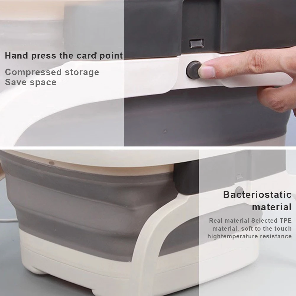 4. Складной и портативный: Есть много подогреваемых ножных ванн или настоек на рынке, но большинство громоздких и трудно хранить. Наши ванны складные, компактные и легко хранить и переносить. Нескользящая ручка: легко держать, удобно заливать воду, можно хранить в подвеске, а объем воды стабильный.