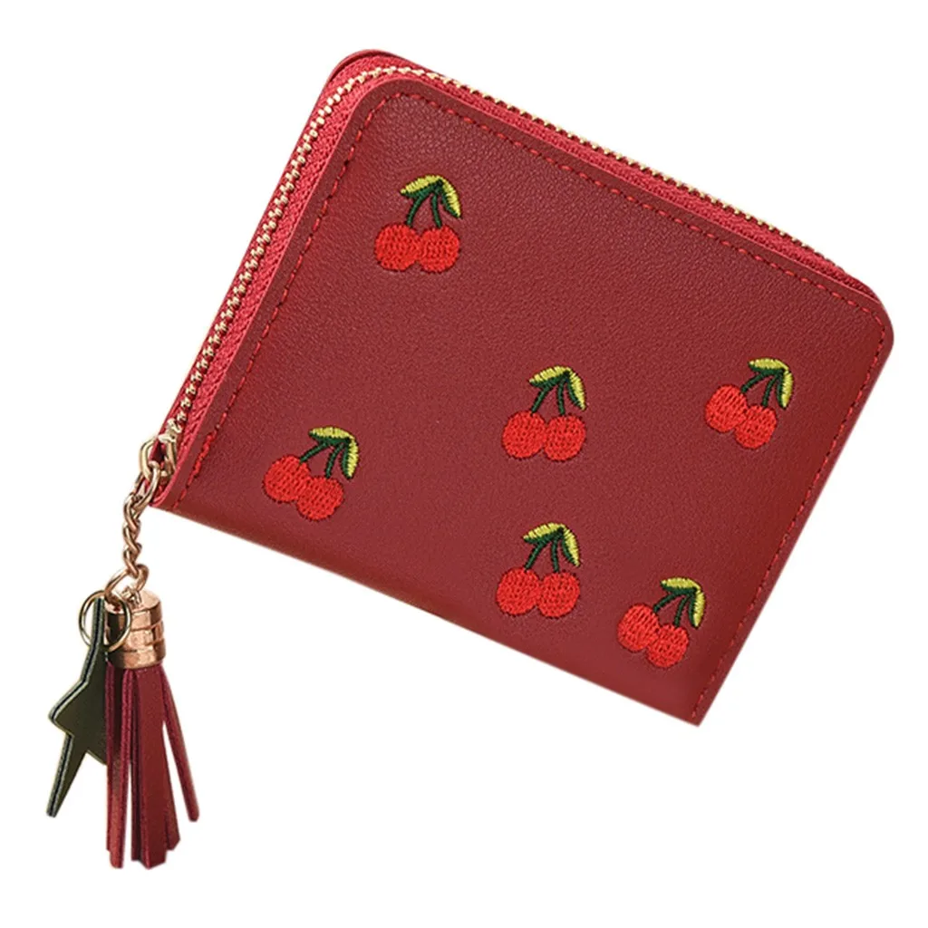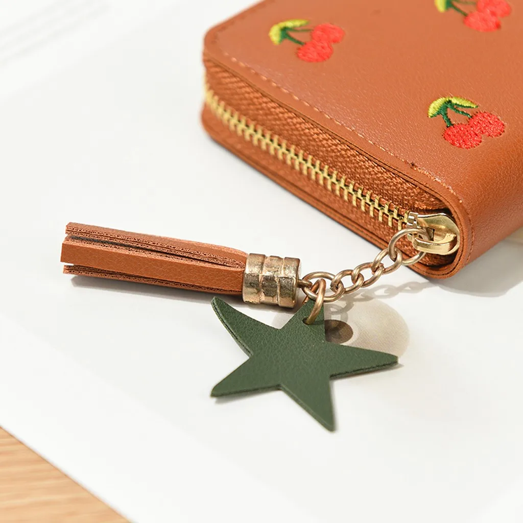 Женский уличный модный трендовый однотонный кожаный бумажник с бахромой и отделением для карт