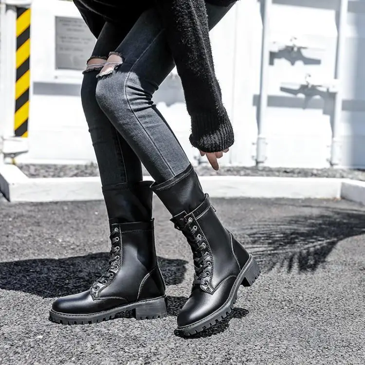 Зимние ботинки Botas Mujer женская обувь модные мотоботы Mulheres Martin Outono Inverno De Couro Femininas