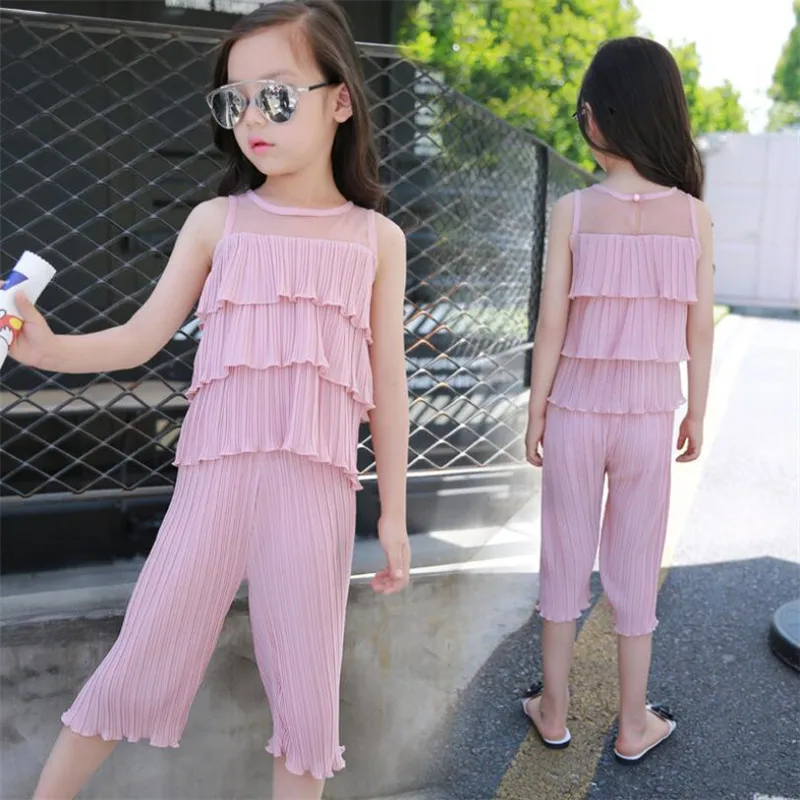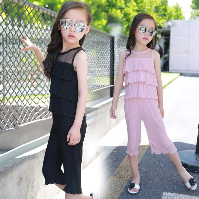 Летние комплекты для девочек из двух предметов комплекты одежды для девочек 4, 5, 6, 8, 9, 10, 12 лет, школьные костюмы шифоновая детская одежда