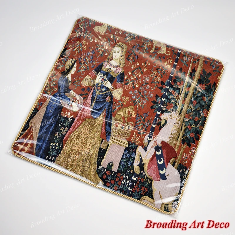 Наволочка Title:Lady & Unicorn-запах Размер: 45x45 см (18x18 дюймов) Вес: 0,3 кг (0,7 фунтов) Материал: хлопок 100% Место производства: соткано в Китае Стиль: жаккардовое переплетение Стирка: только химчистка Обратная сторона: одинаковый рисунок с обеих сторон