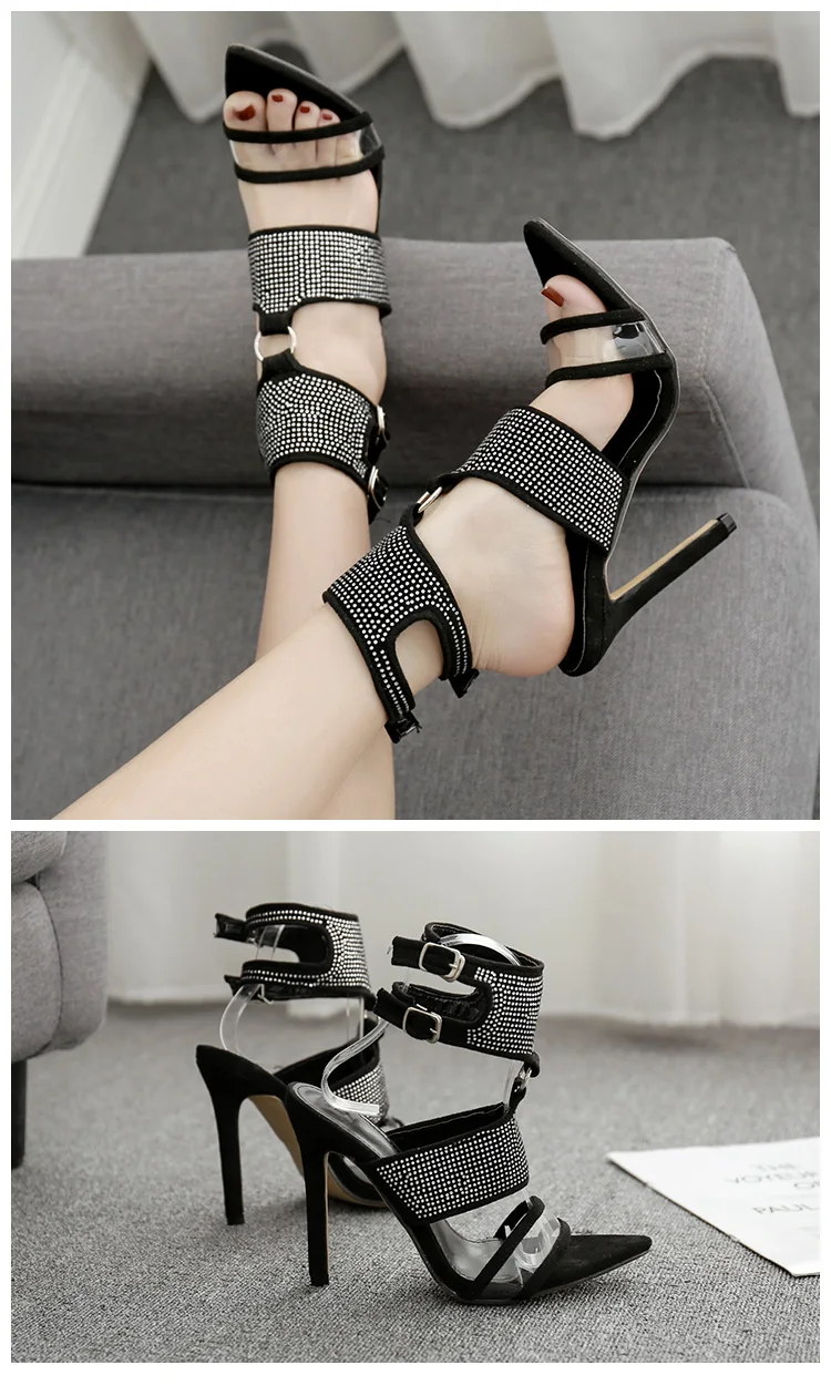 Женские прозрачные сандалии из прозрачной пленки на высоком каблуке с