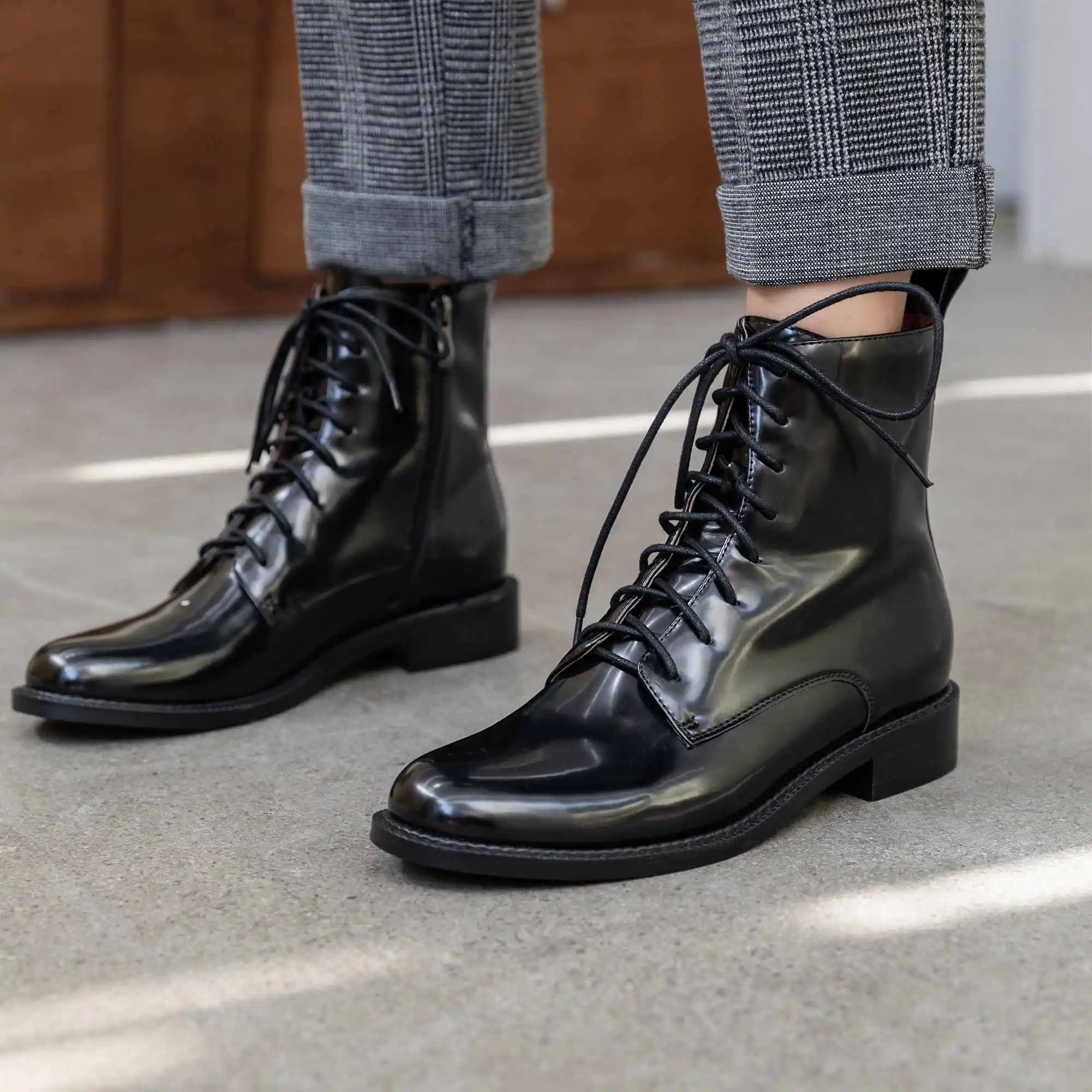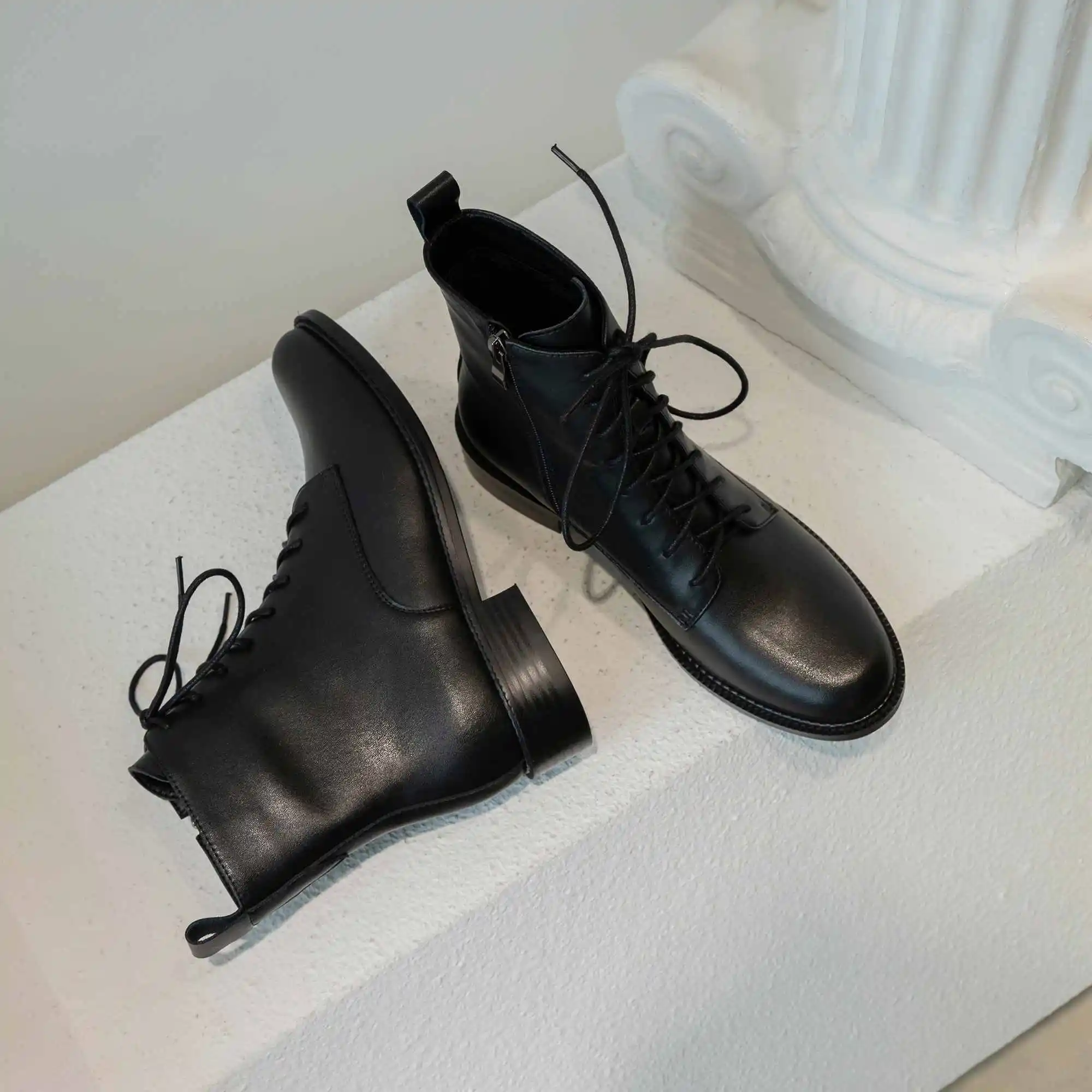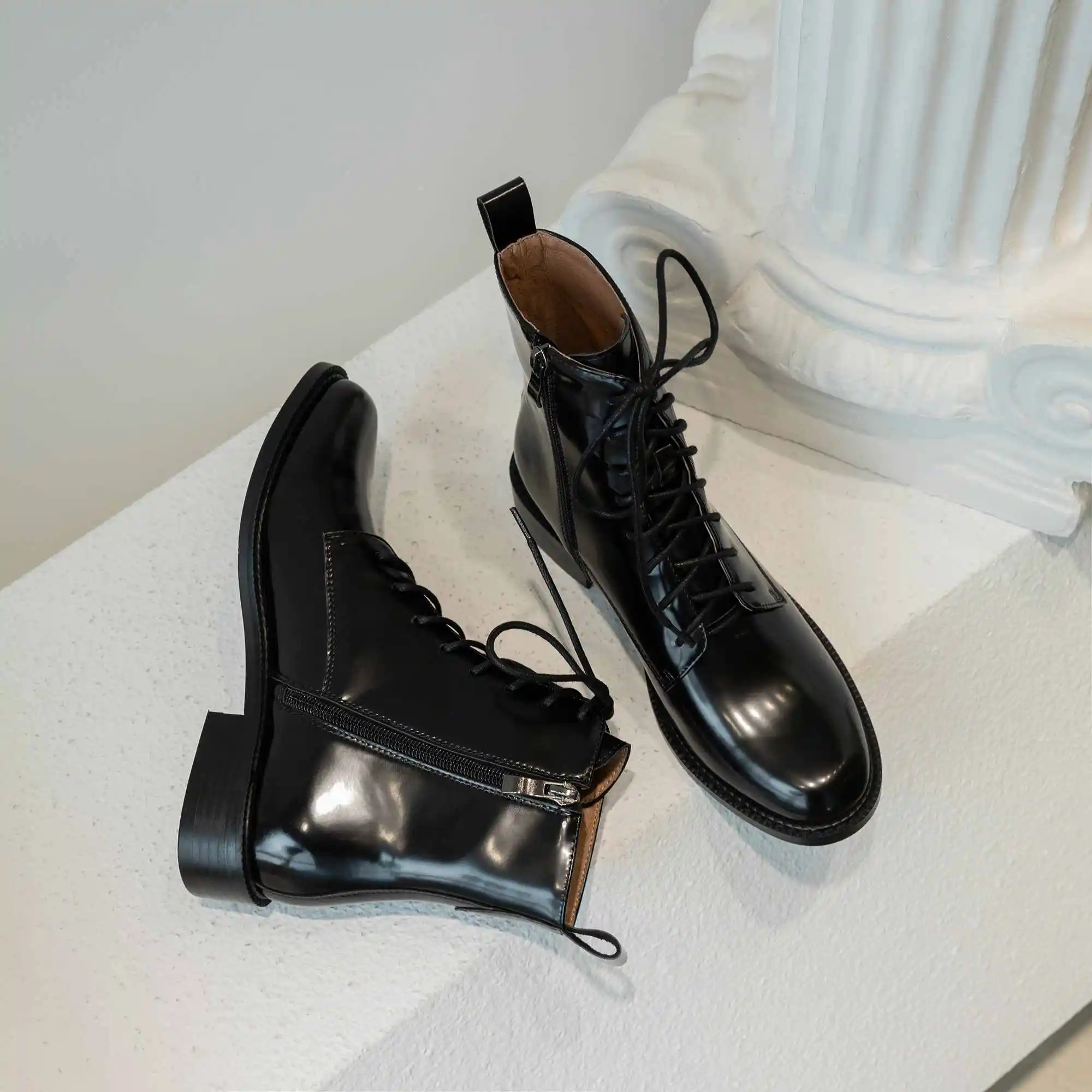 Женские ботильоны на платформе с высоким каблуком черные коричневые круглым