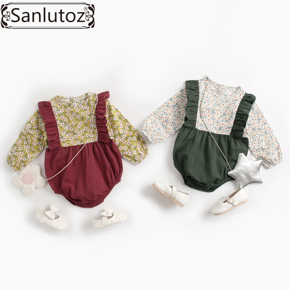 Sanlutoz/Одежда для маленьких девочек; Милые детские комбинезоны с длинными рукавами; Повседневная одежда для новорожденных; Хлопковая одежда с имитацией двух предметов