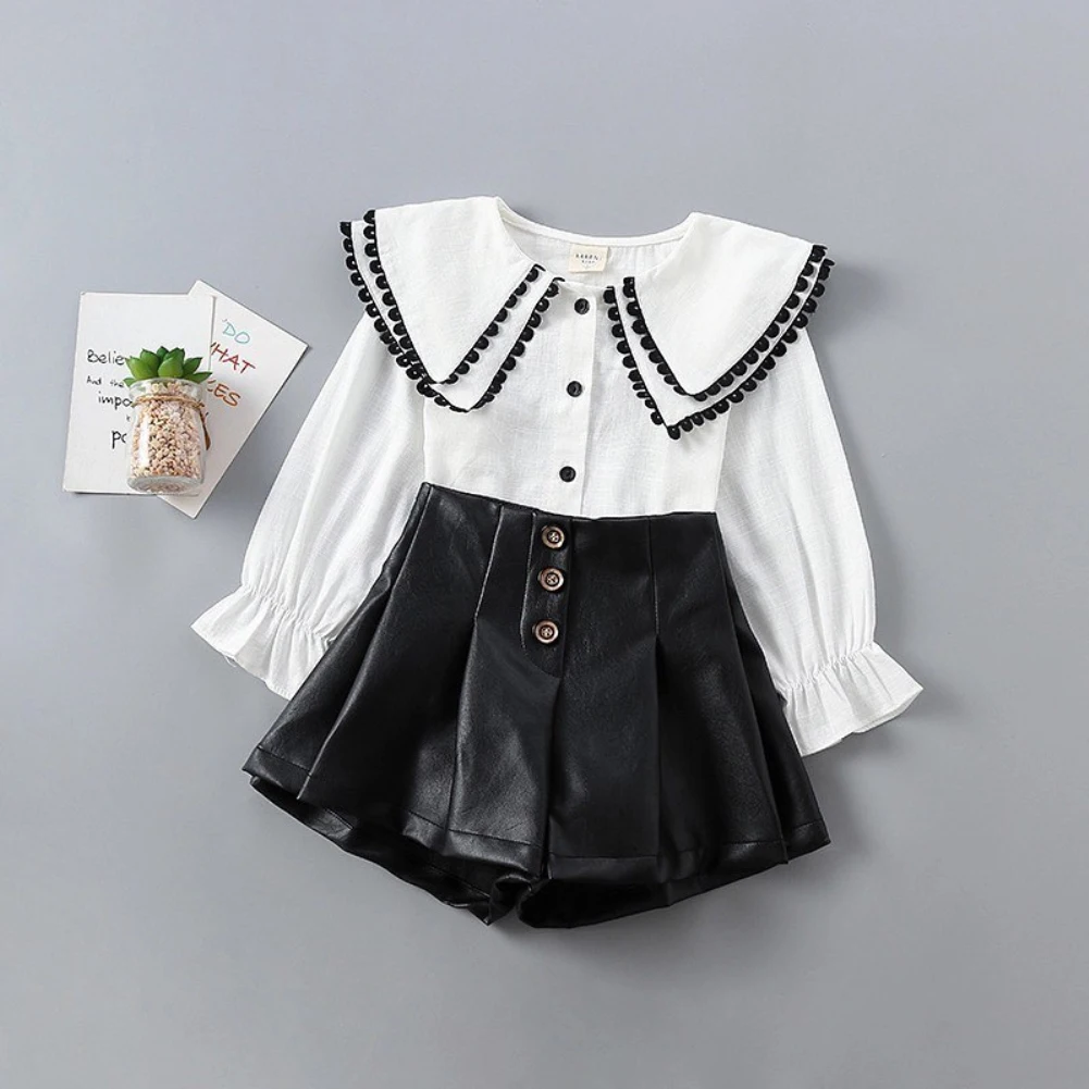 Основной цвет: как на картинке Новинка в моде Материал: смесь хлопка и кожаОбратите внимание: если ваш ребенок полноват, мы рекомендуем выбрать больший размер, спасибо. Просим перепроверять размеры детей, рост и полноту по размерной таблице перед покупкой/подачей заявки. Спасибо за понимание. Посылка включает в себя:1x топы +1xБрюки для девочек Размеры таблицей: