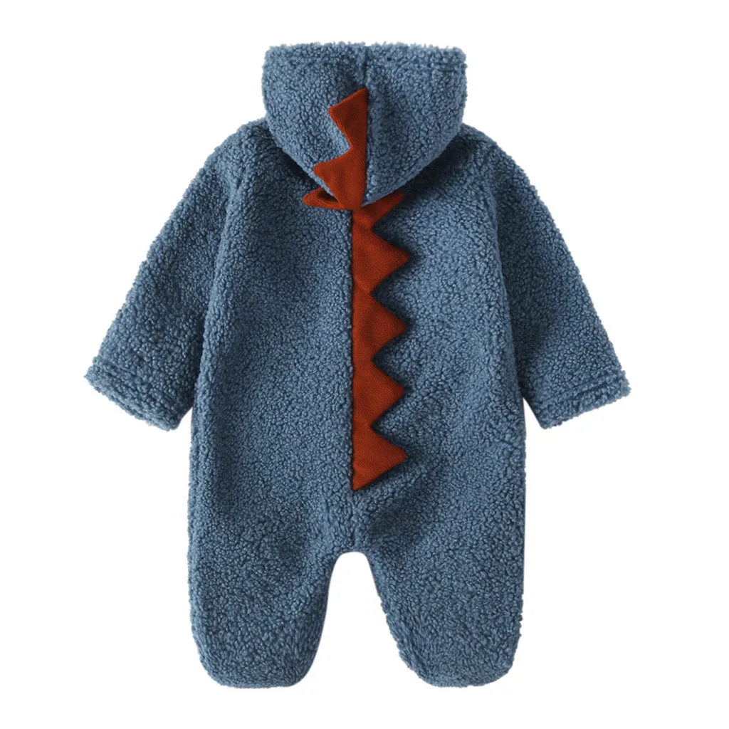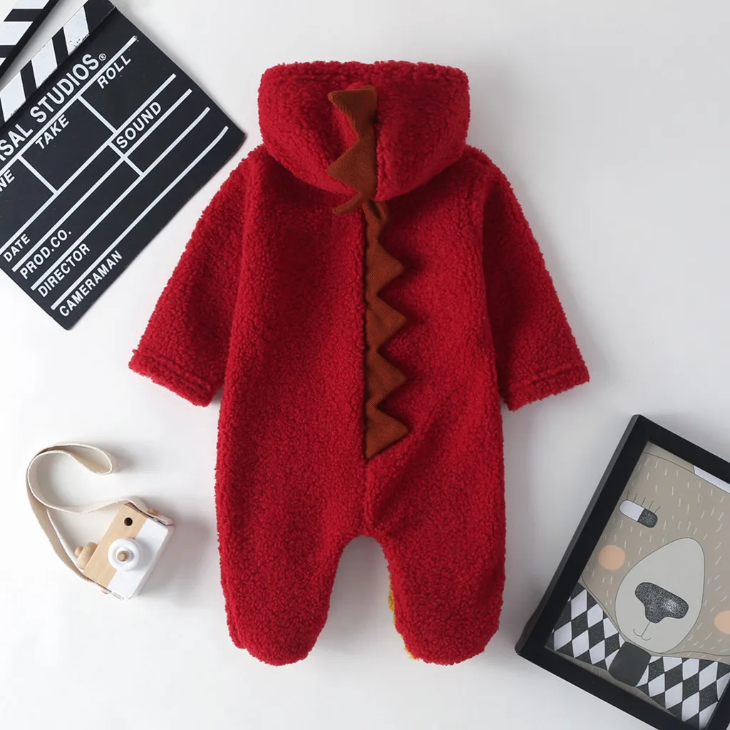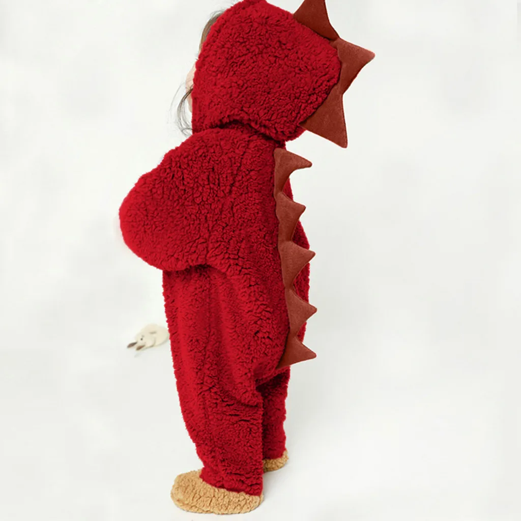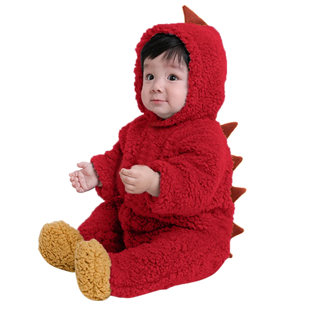 Infant Baby Boys Girls Cartoon Dinosaur Fleece Hoodie Romper Clothes Jumpsuit
