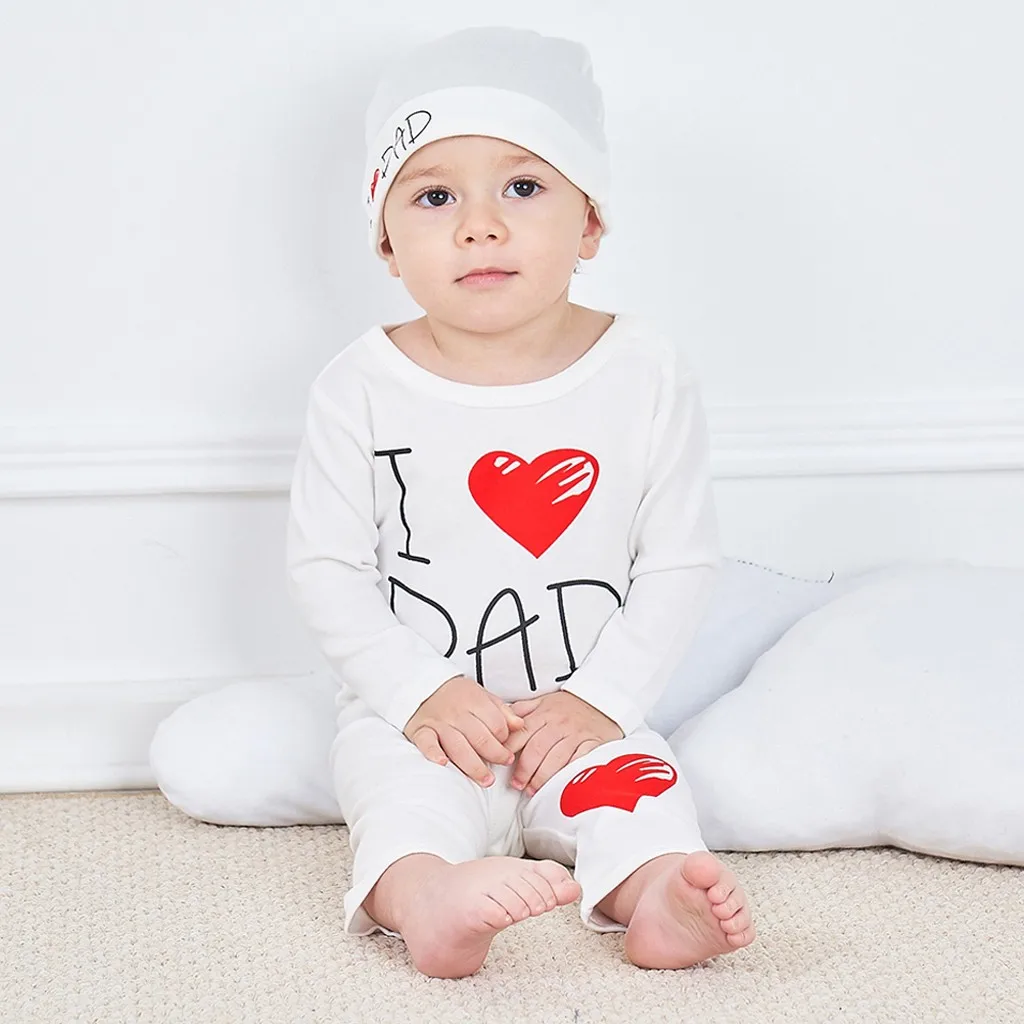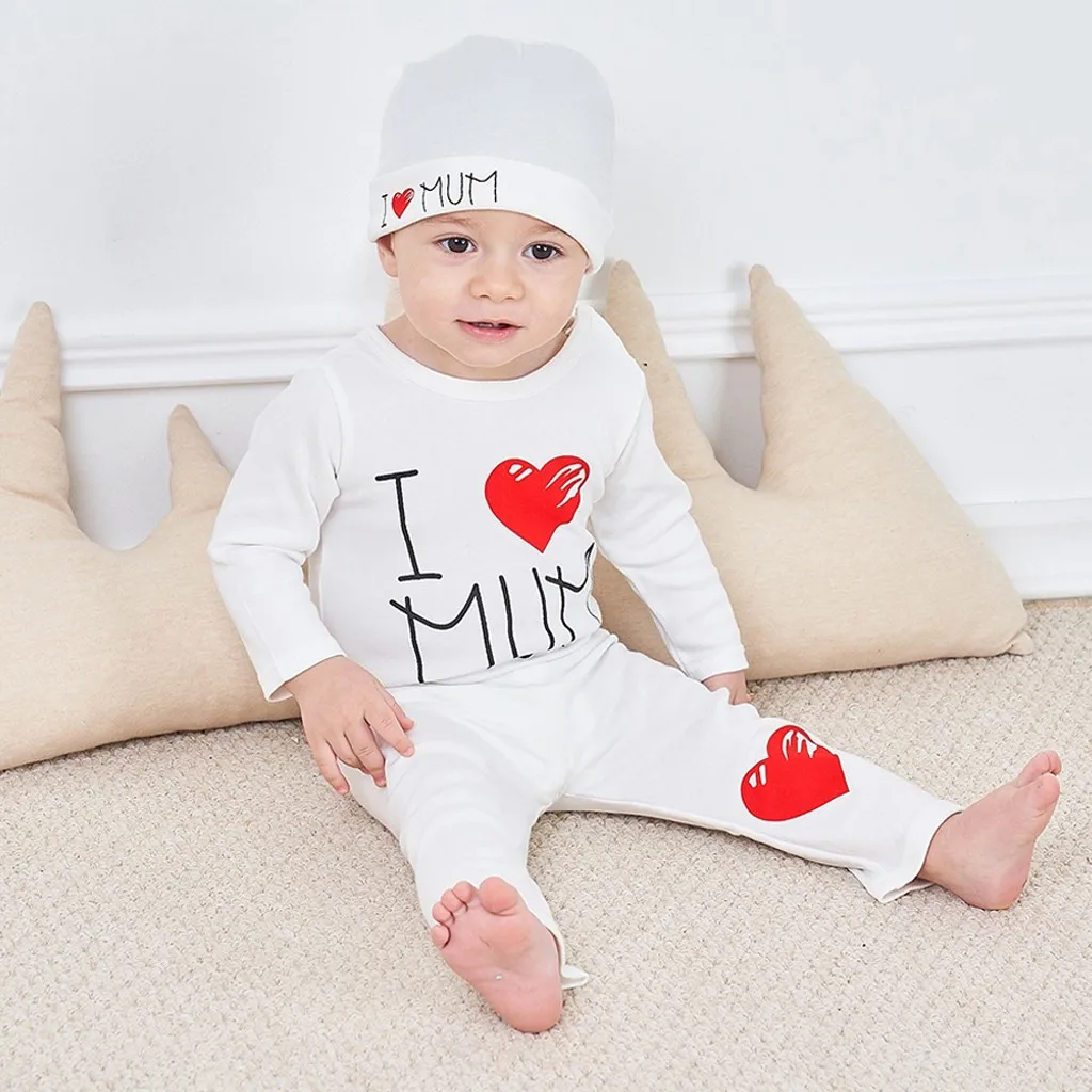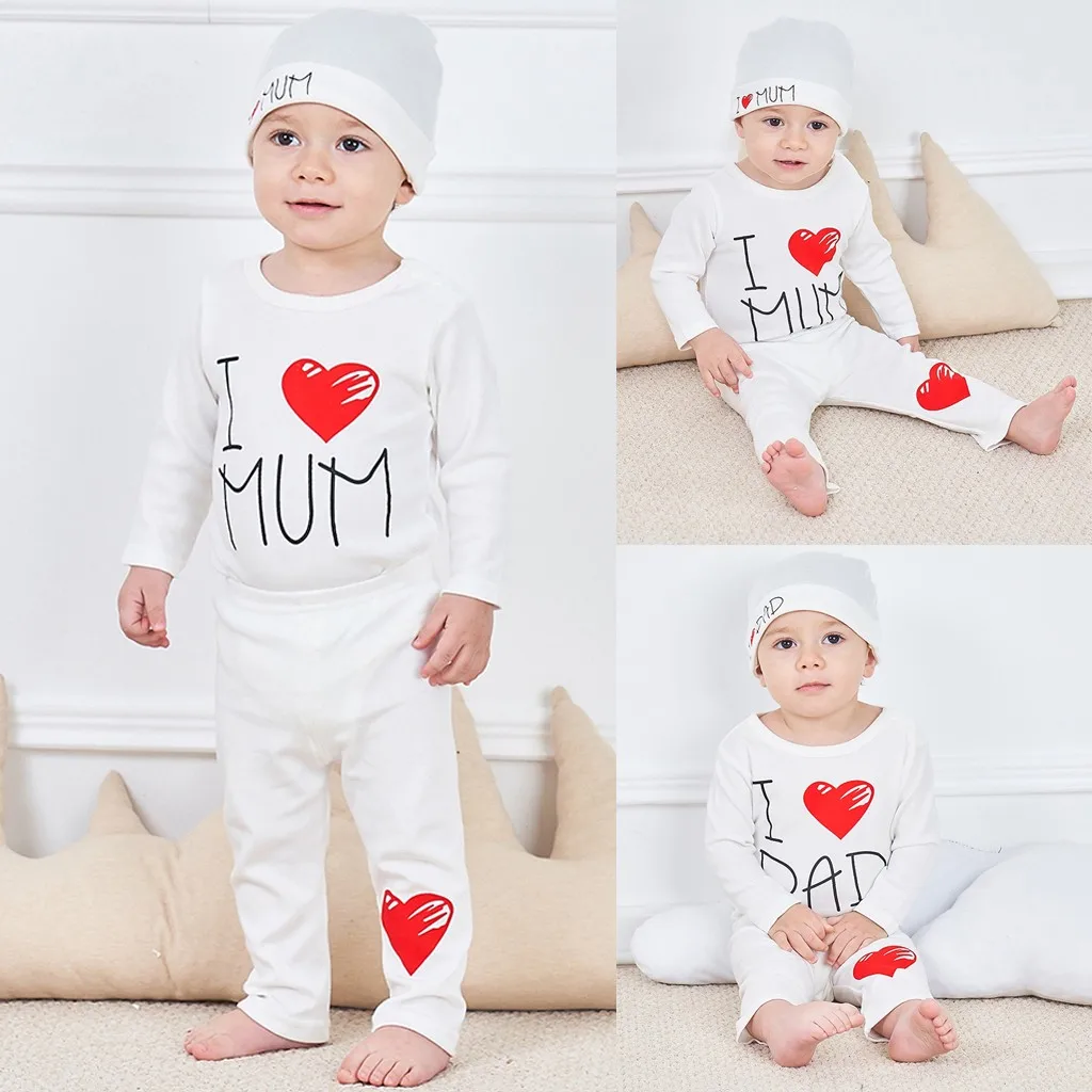 Комплект одежды для маленьких мальчиков и девочек: комбинезон с надписью «Love» + штаны + шапочка