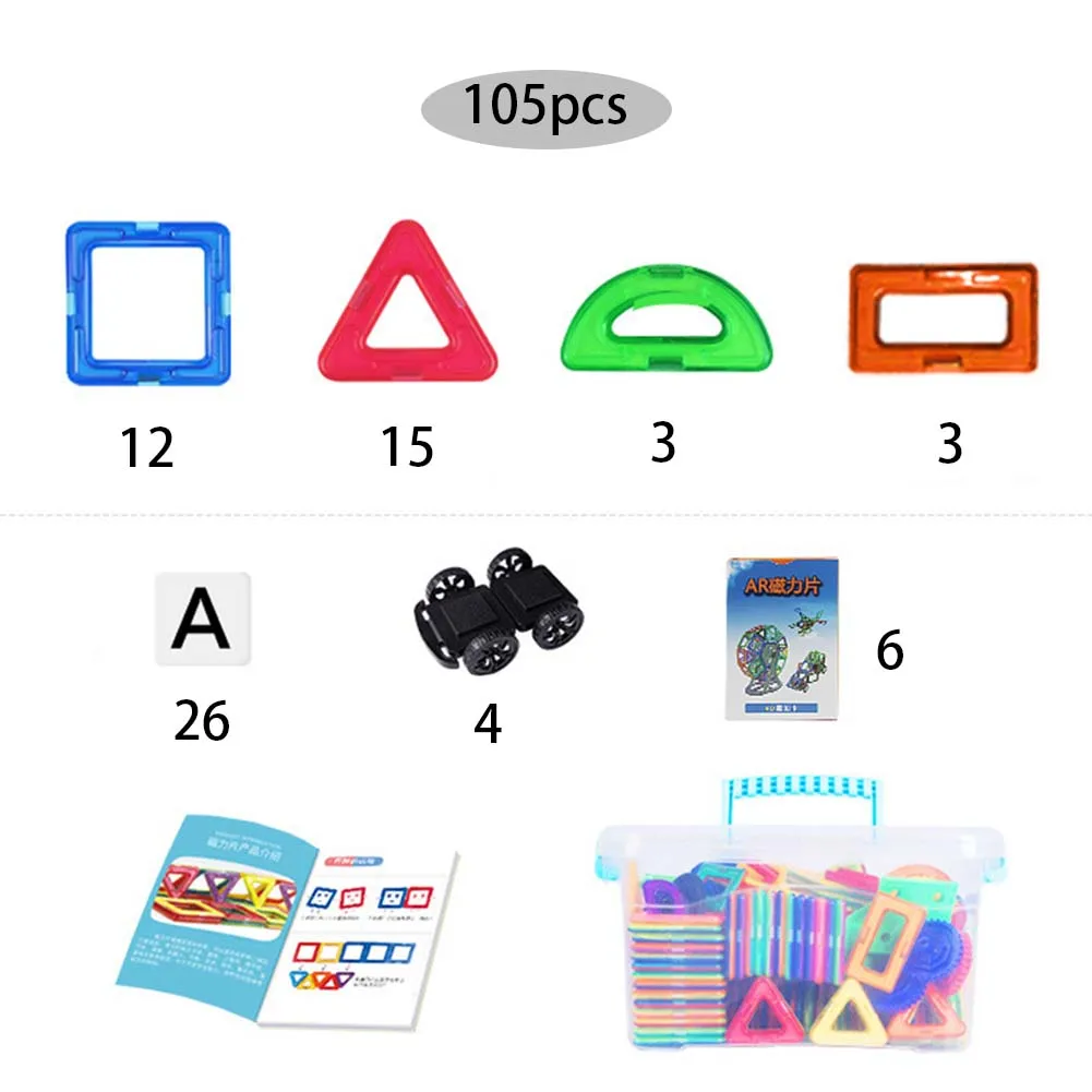 1. Название продукта: магнитные строительные блоки2. Количество продуктов: 105 шт3. Функции продукта: магнитные листы строительные блоки, подарок на день рождения, подарок на праздникОсобенности:1. Квадратный * 12 треугольник * 15 полукруг * 3 маленьких прямоугольника * 3 буквы * 26 тележка * 6 4D карты * 40 руководство * 1 коробка для хранения * 12. Высокое качество и безопасность АБС-пластик высокого качества, нетоксичный, легкий, без опасных острых краев. Магниты достаточно прочные, чтобы создавать и поддерживать множество прочных узоров и форм. Комплект совместим с блочными комплектами аналогичного размера.3. Развитие нескольких умений улучшает развитие мелкой моторики вашего ребенка, распознавание цвета, командная работа, воображение и творческие способности.4. Идеальный дорожный набор содержит рюкзак, который идеально подходит для путешествий или когда спешит. Удобная сумка для хранения позволяет держать части вместе и уменьшает потери частей.5. Идеальный подарок для детей фантастический для детей, но приятный комплект для любого возраста. Магнитный Строительный набор-очень популярный подарок. Легко расширяется, добавляя дополнительные наборы.Список продуктов:Квадратный * 12Треугольник * 15Полукруг * 3Небольшая прямоугольная * 3Письмо * 26Тележка * 64D карты * 40Руководство * 1Ящик для хранения * 1![]()