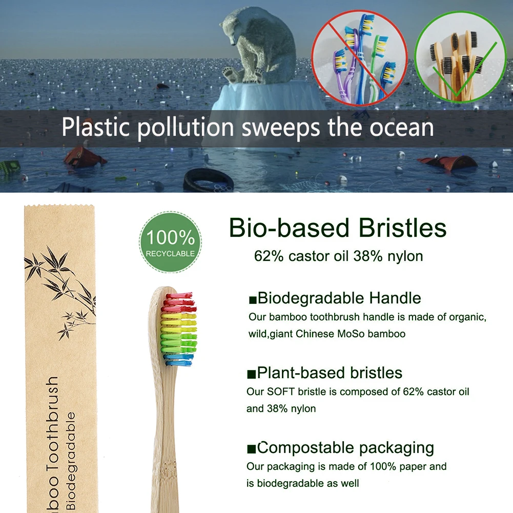 Зубная щетка Nuature Bamboo, мягкая щетина, биоразлагаемая зубная щетка, веганская Органическая Экологичная зубная щетка, уход за полостью рта, зубочистки на открытом воздухе