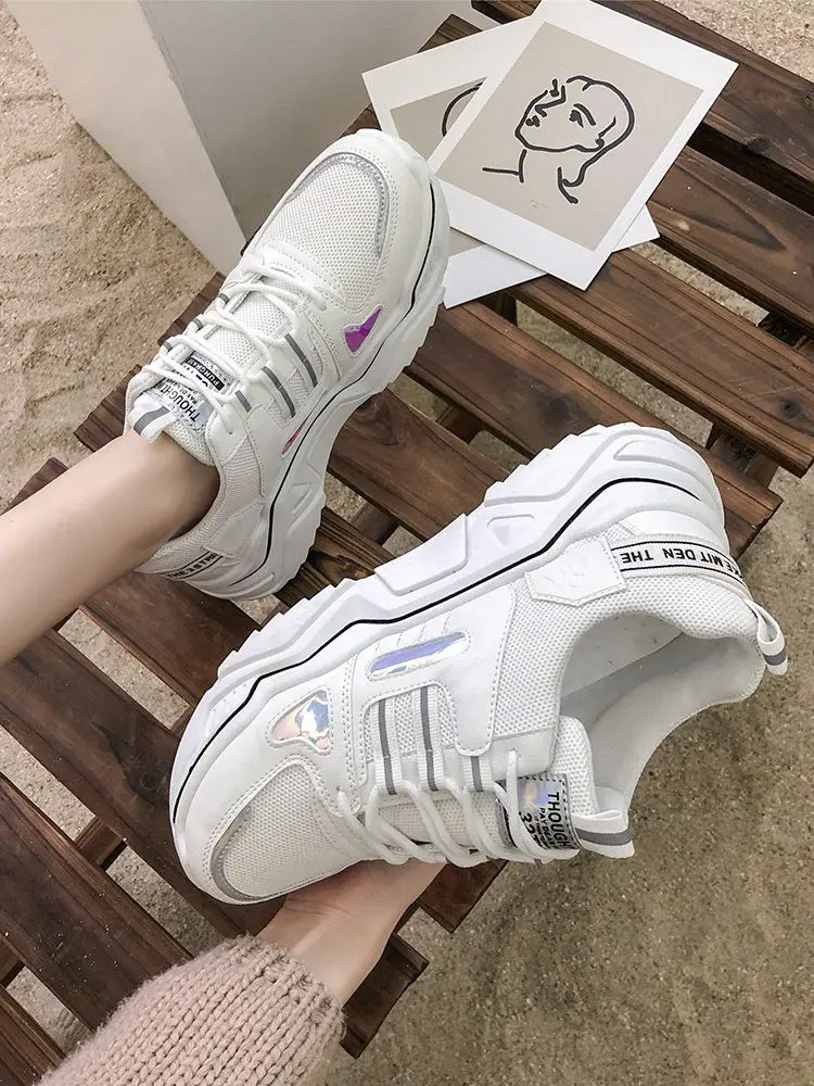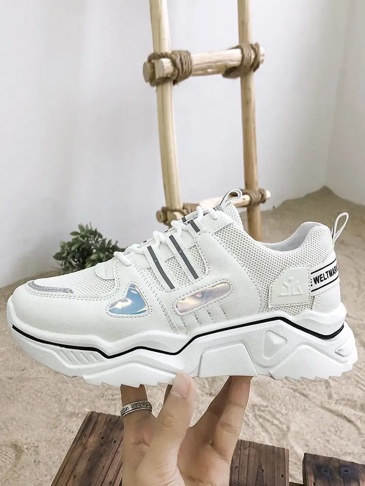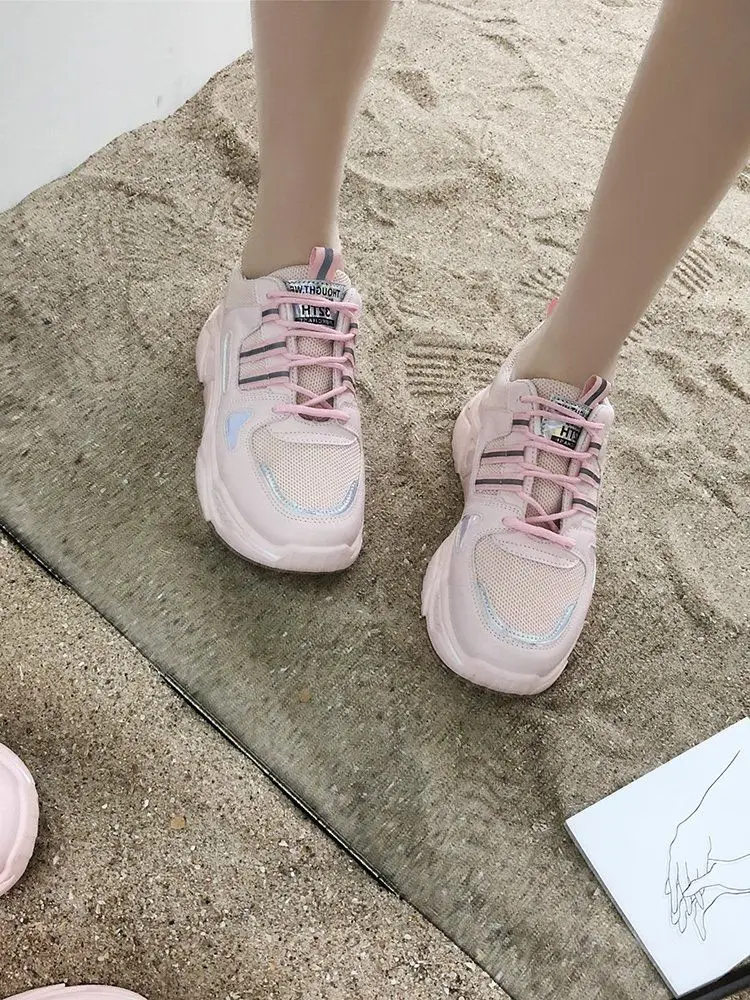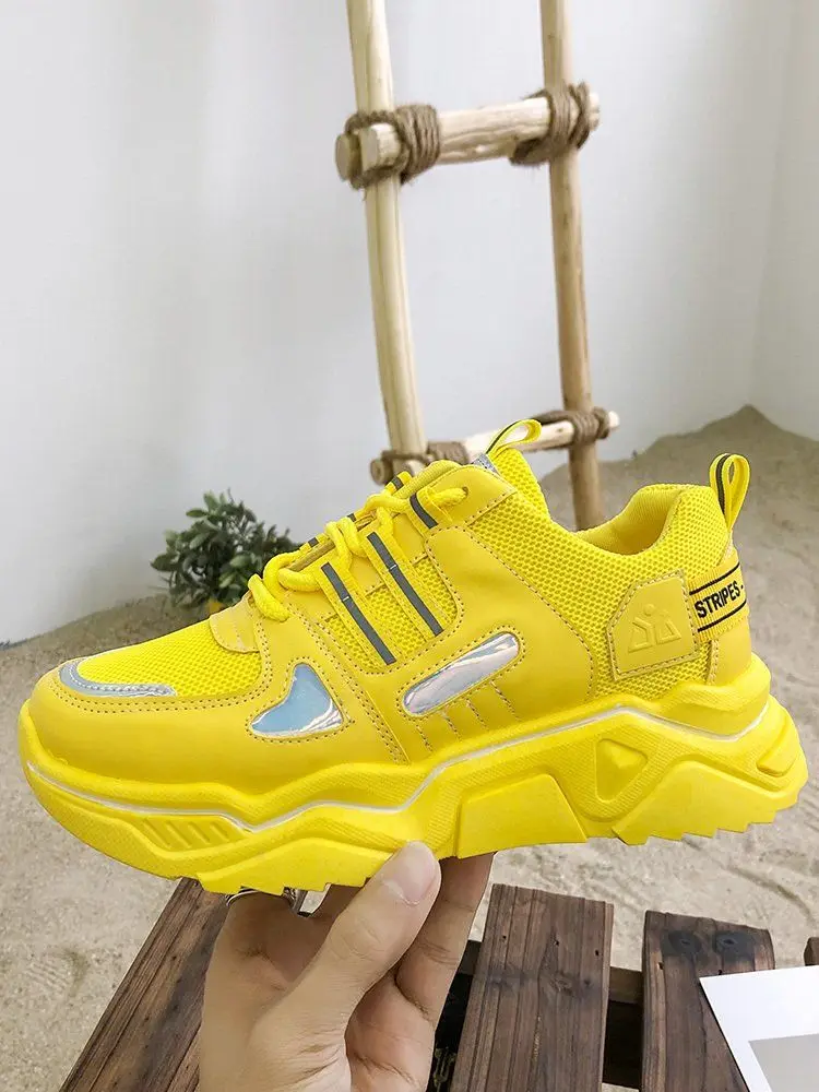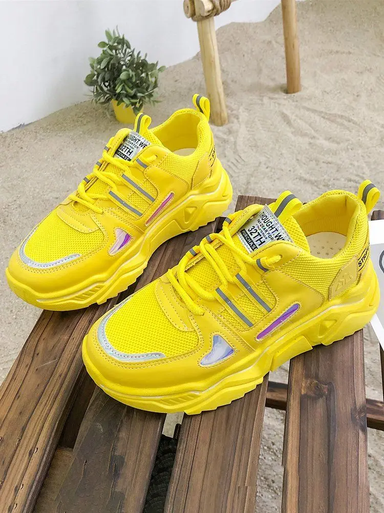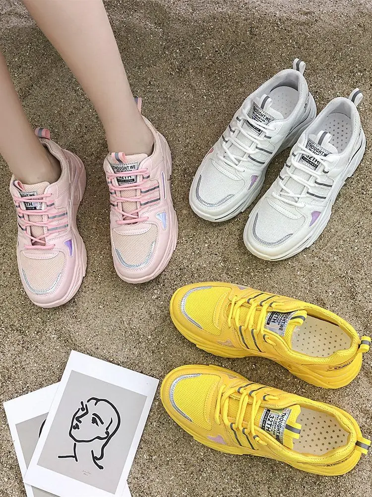 Женские массивные кроссовки белые розовые желтые женская обувь на шнуровке
