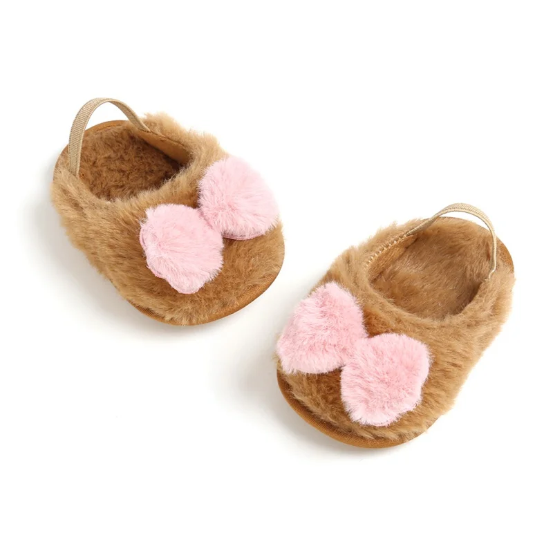 Милые плюшевые мягкие шлепанцы без шнуровки для маленьких девочек; Сандалии на плоской подошве; Тапочки; Повседневная детская обувь для кроватки
