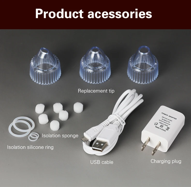 2. При использовании: Поместите продукт вперед и назад медленно на коже, не остаются в одном и том же месте слишком долго, таким образом, чтобы не повредить кожу. Можно высасывать жир, белую головку, акне и легкие угри. Если угрей глубже, лучше использовать его вместе с жидкостью для экспорта угрей! Это не имеет значения, если вы можете/не сосать его одновременно. Не используйте его слишком долго каждый раз. Через какое-то время, около недели или двух, темные Угри выйдут и не оставят шрамов.